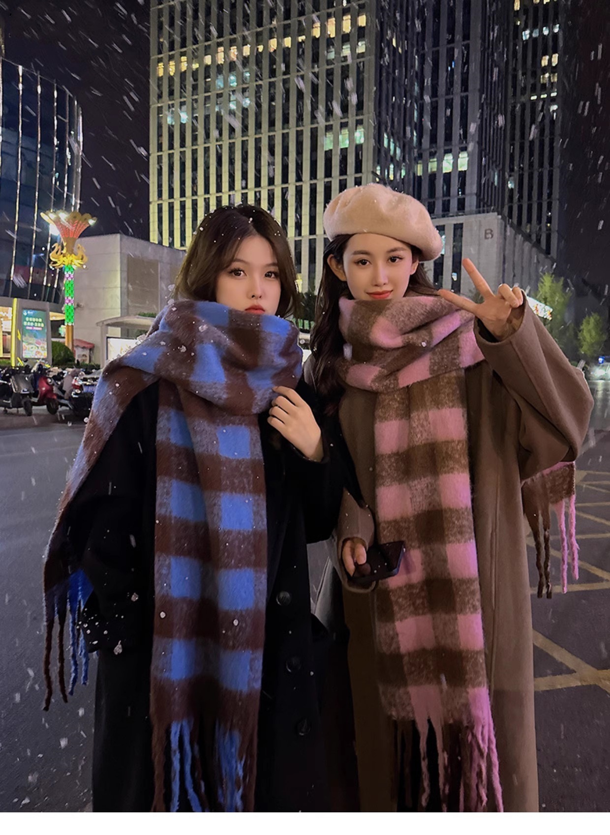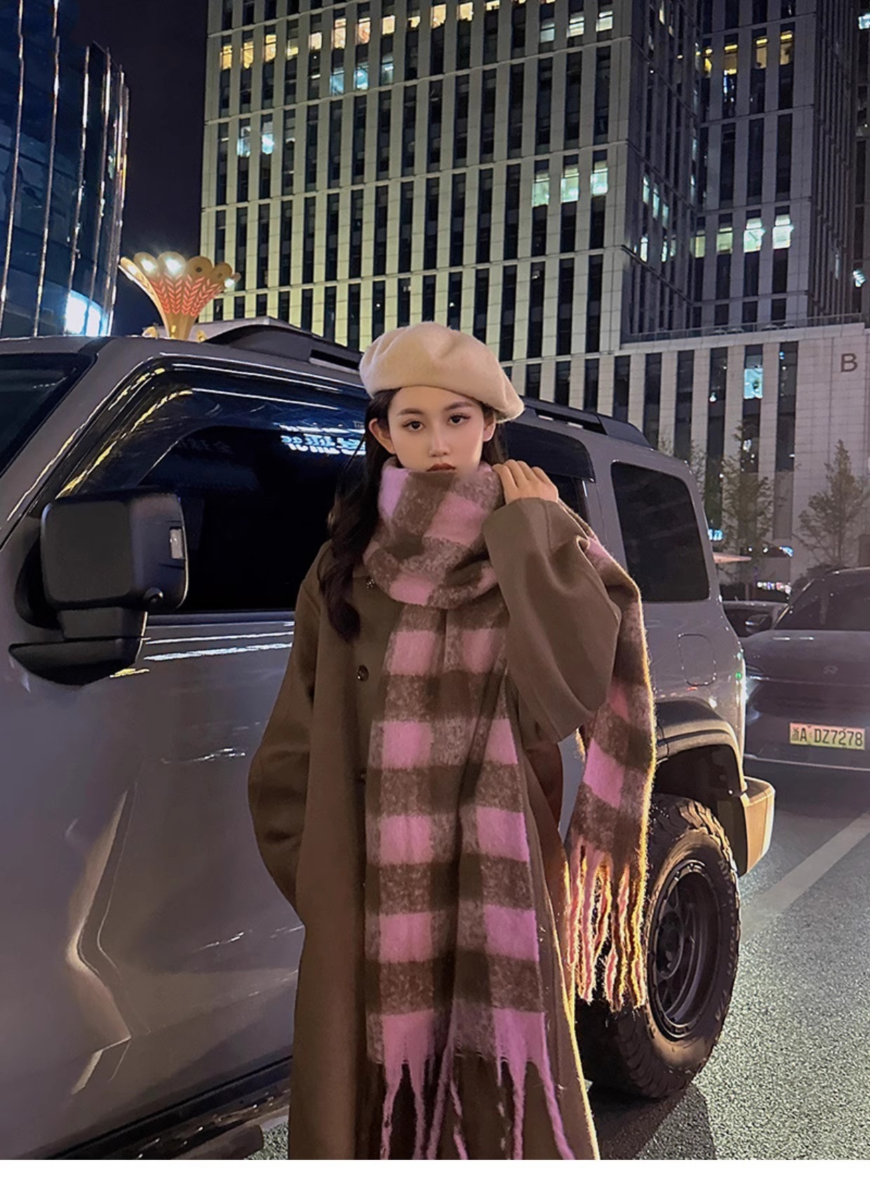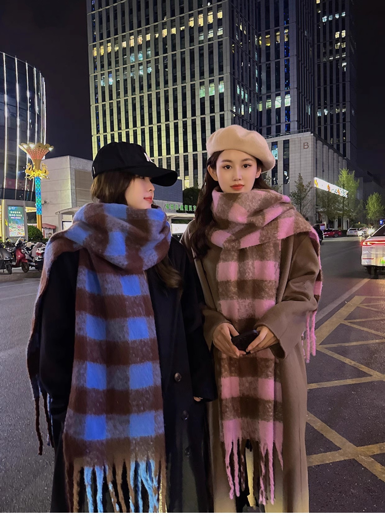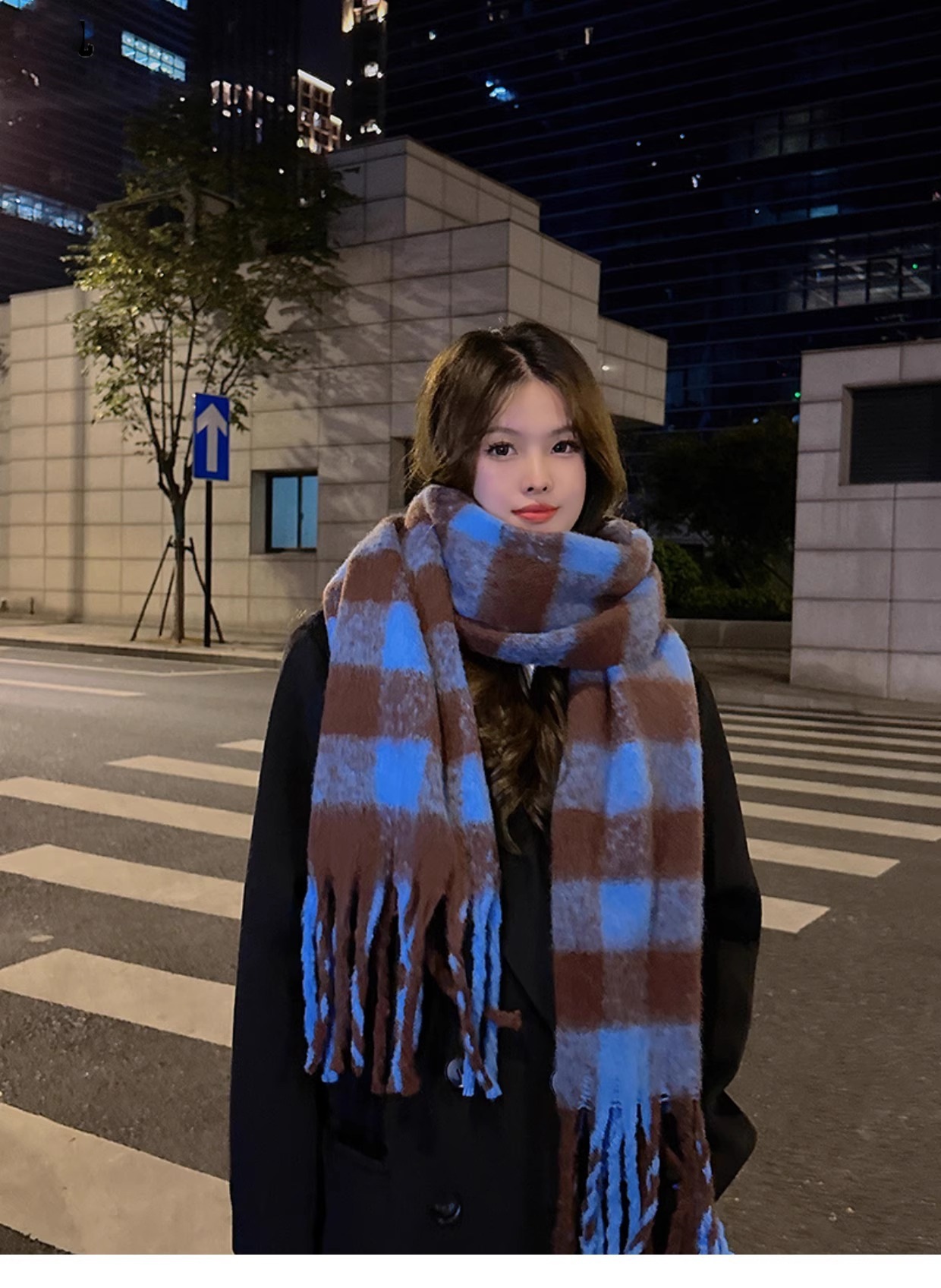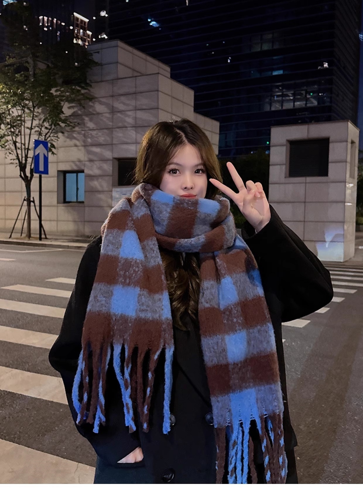 2025秋冬スカーフ レディース 高級感 カップル 韓国風 ショール 学生 女性用 タッセル付き チェック柄 ロングスカーフ 防寒