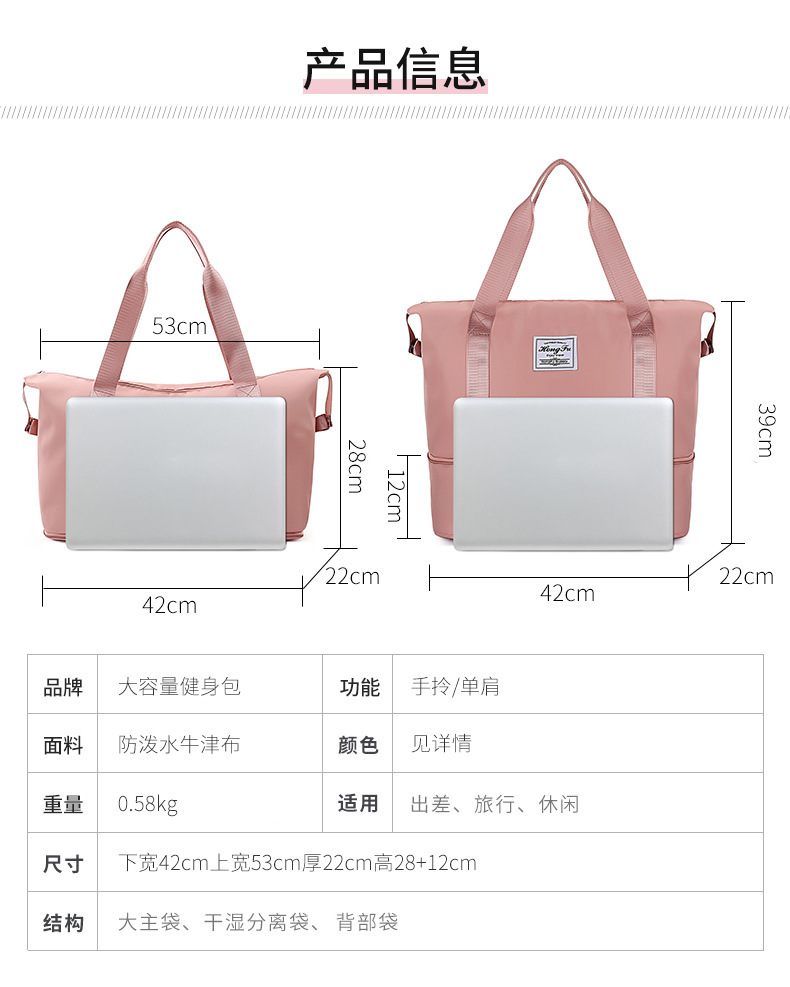 短距離旅行バッグ女性の大容量拡張乾湿分離フィットネスバッグスポーツヨガバッグマタニティ収納荷物バッグ