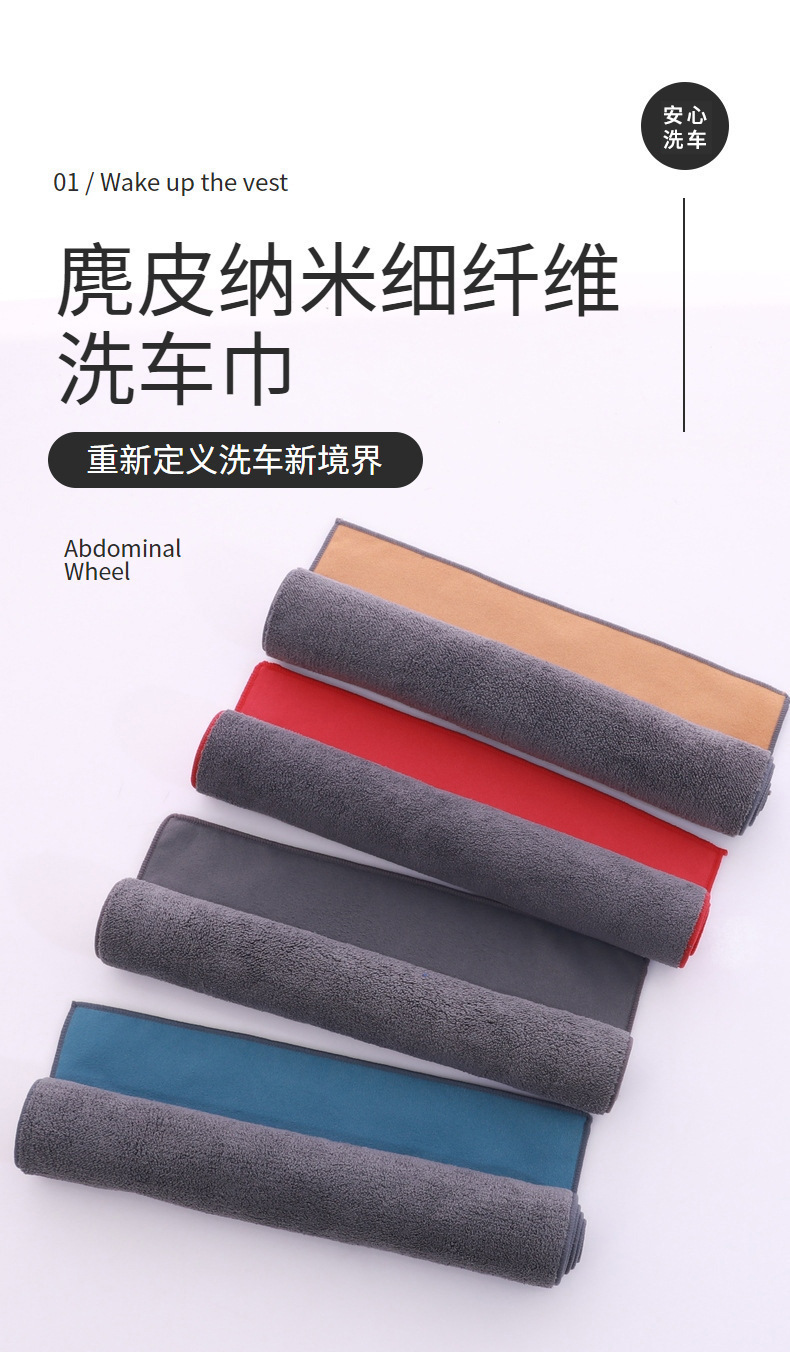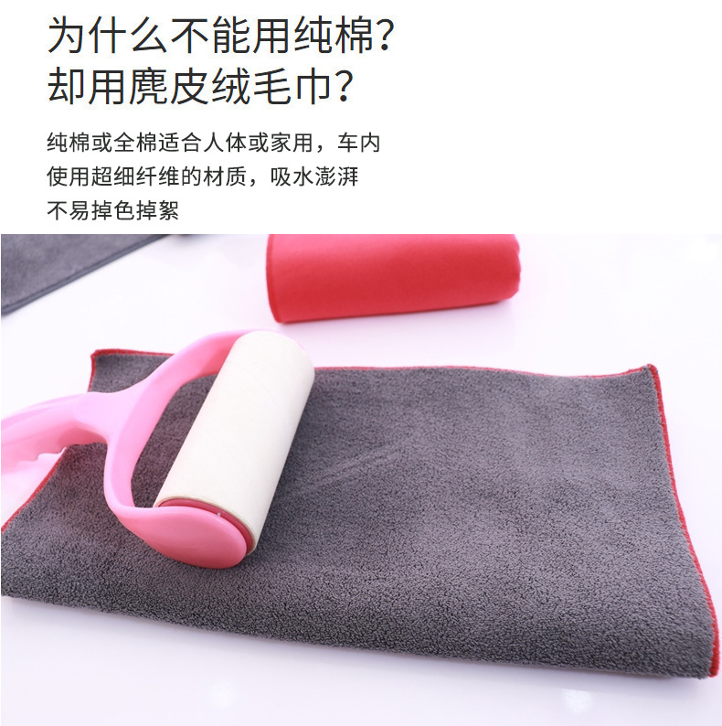 柔らかいスエード洗車タオル、厚手のコーラルベルベット車拭きタオル、ガラス拭き、跡が残らない鹿革吸水タオル卸売