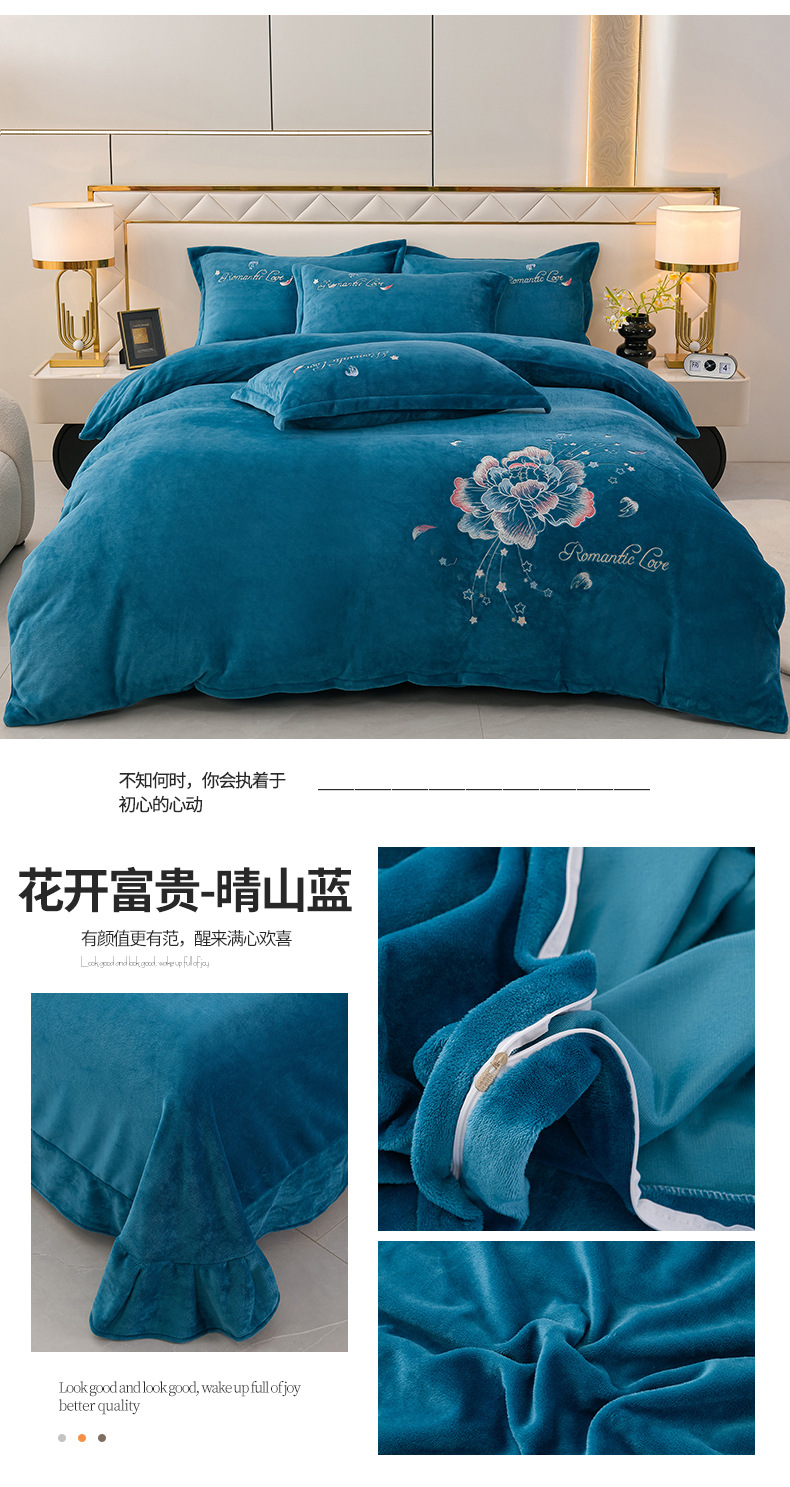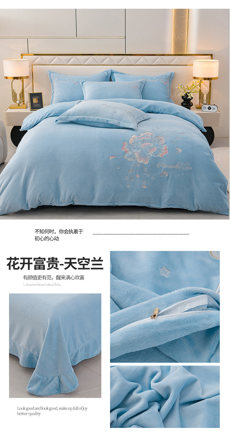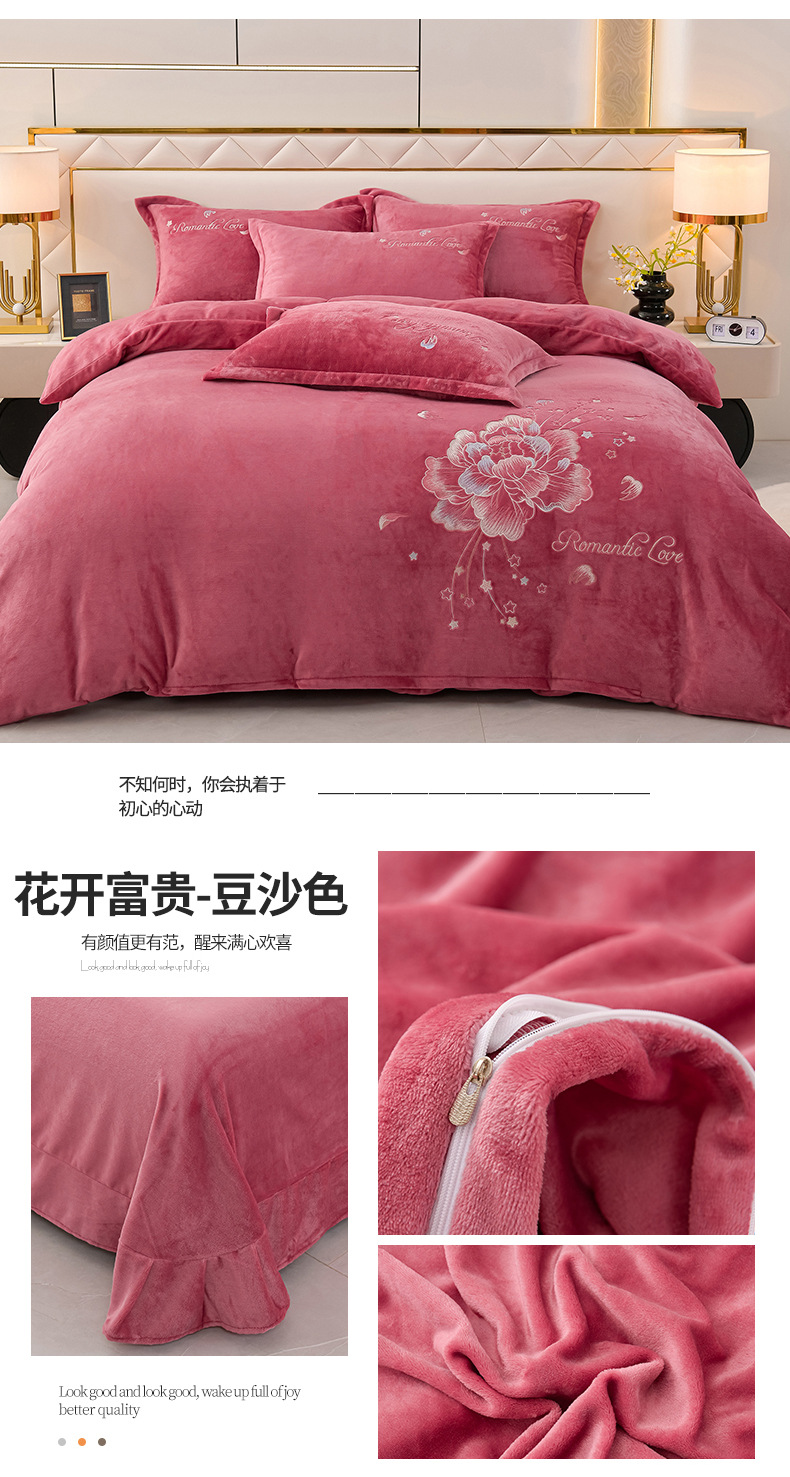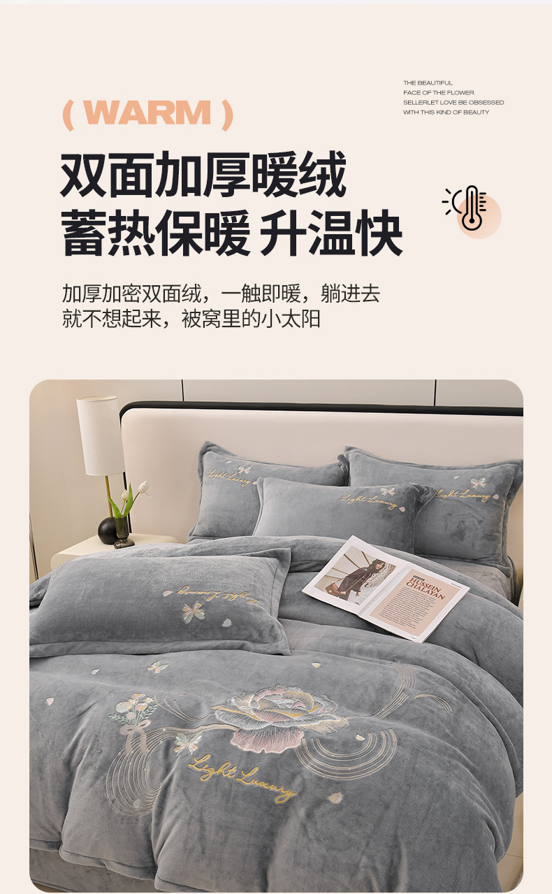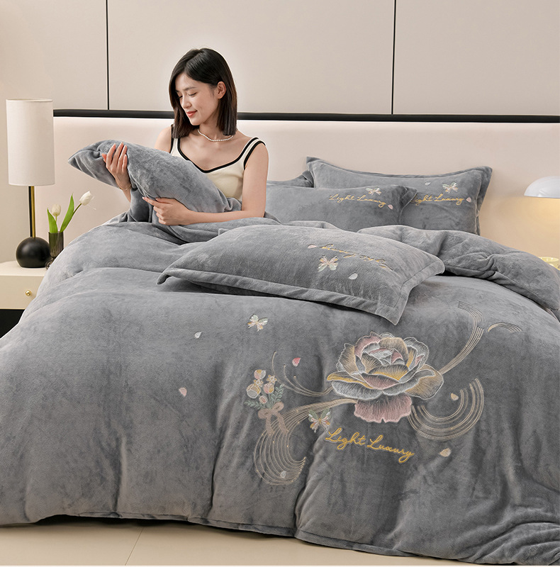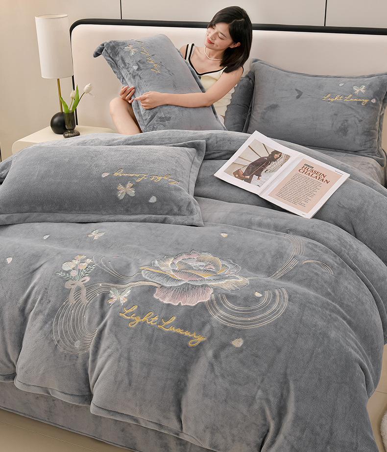 厚いミルクの毛の4つのセットを生放送します。冬の保温寝具の両面の毛の刺繍の4つのセットです。