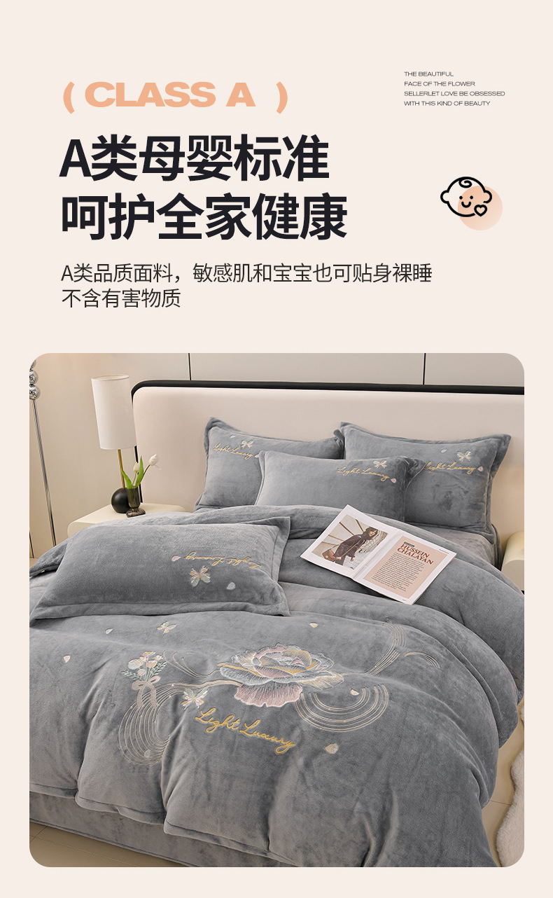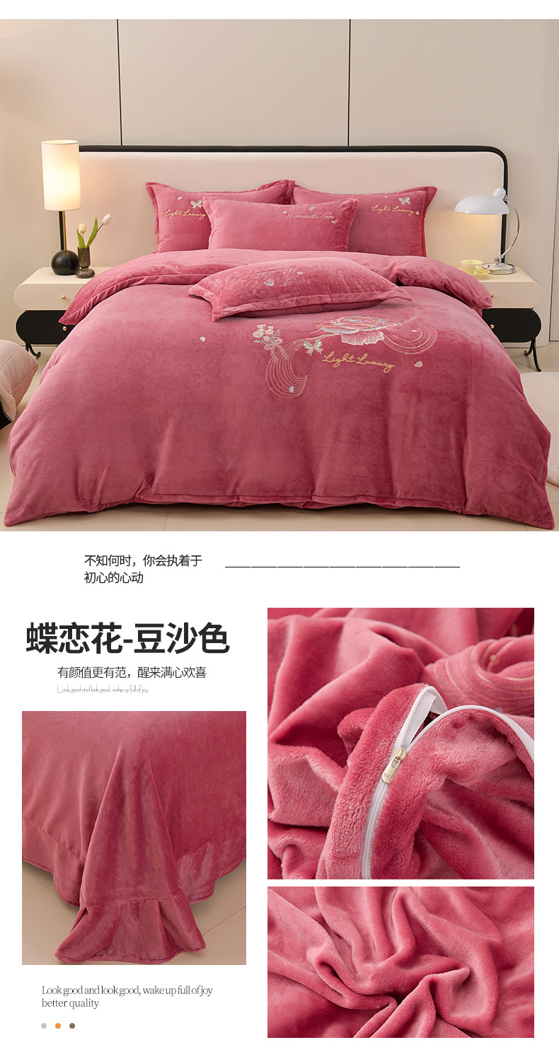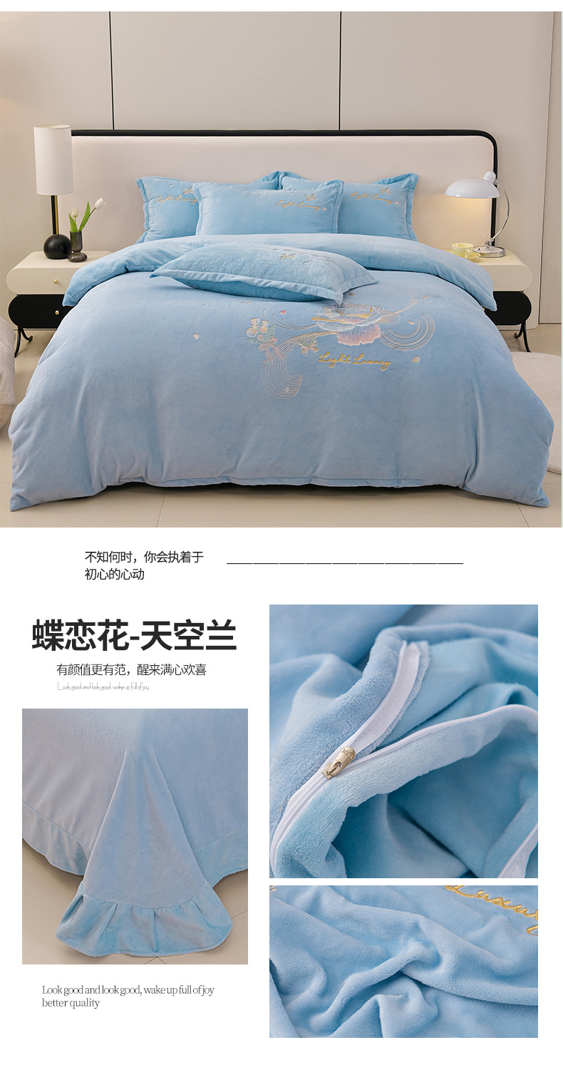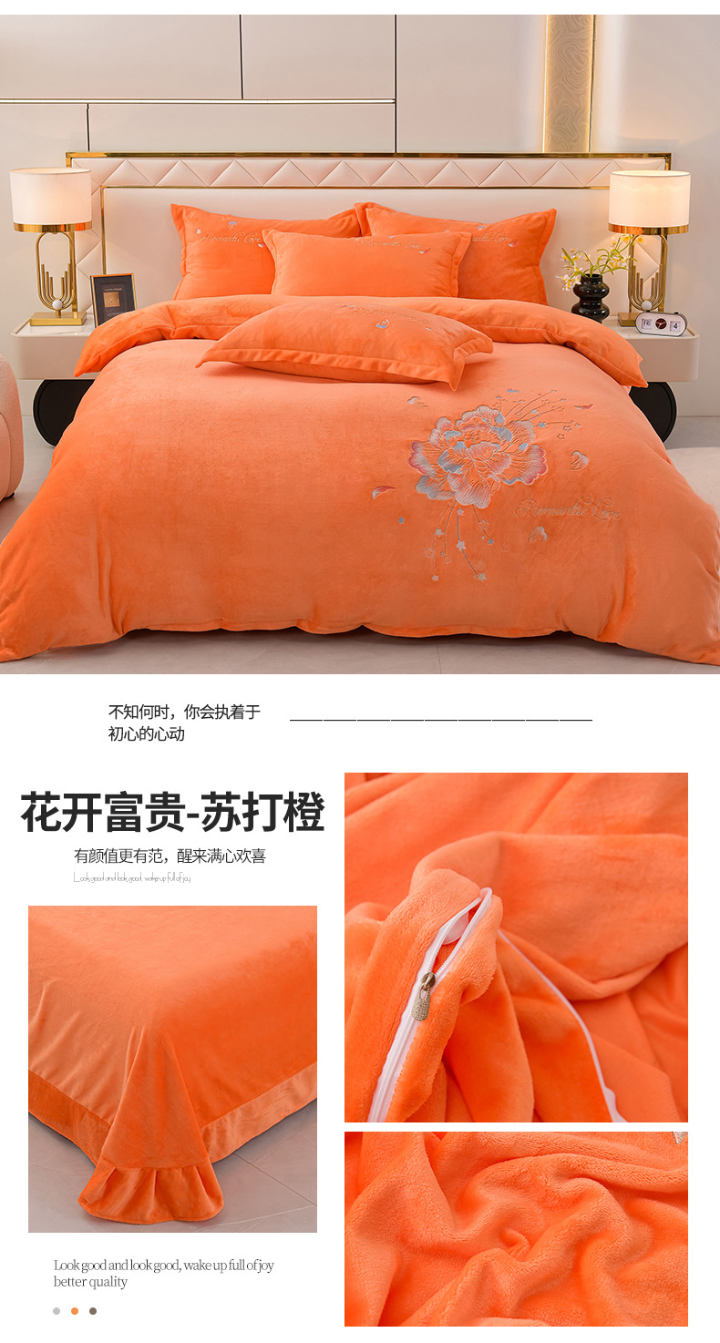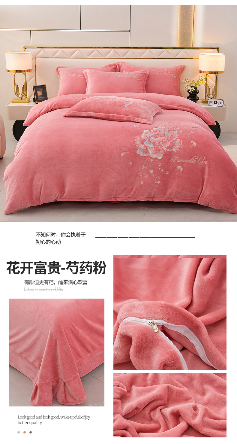 厚いミルクの毛の4つのセットを生放送します。冬の保温寝具の両面の毛の刺繍の4つのセットです。