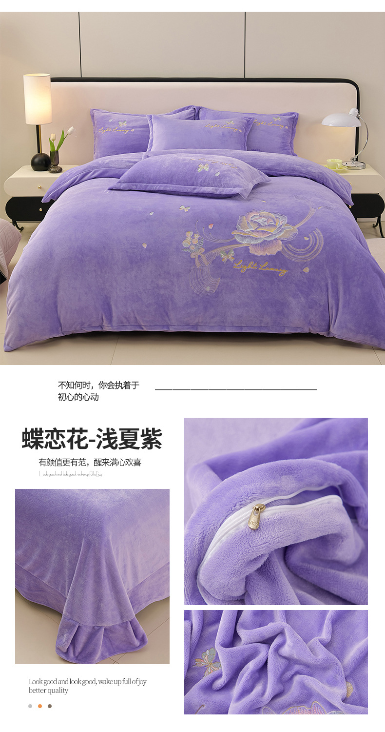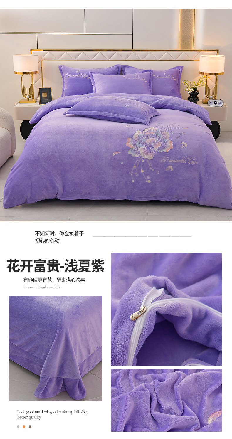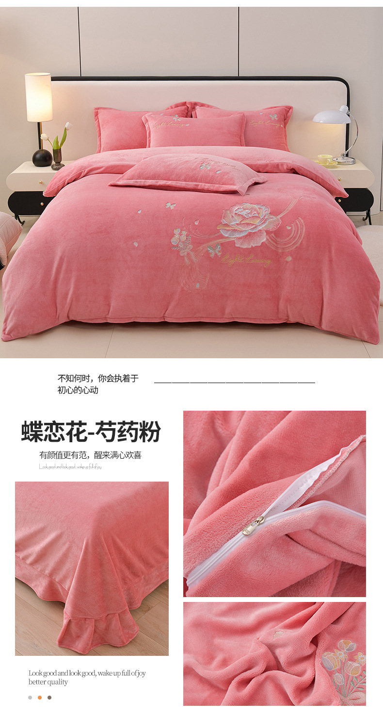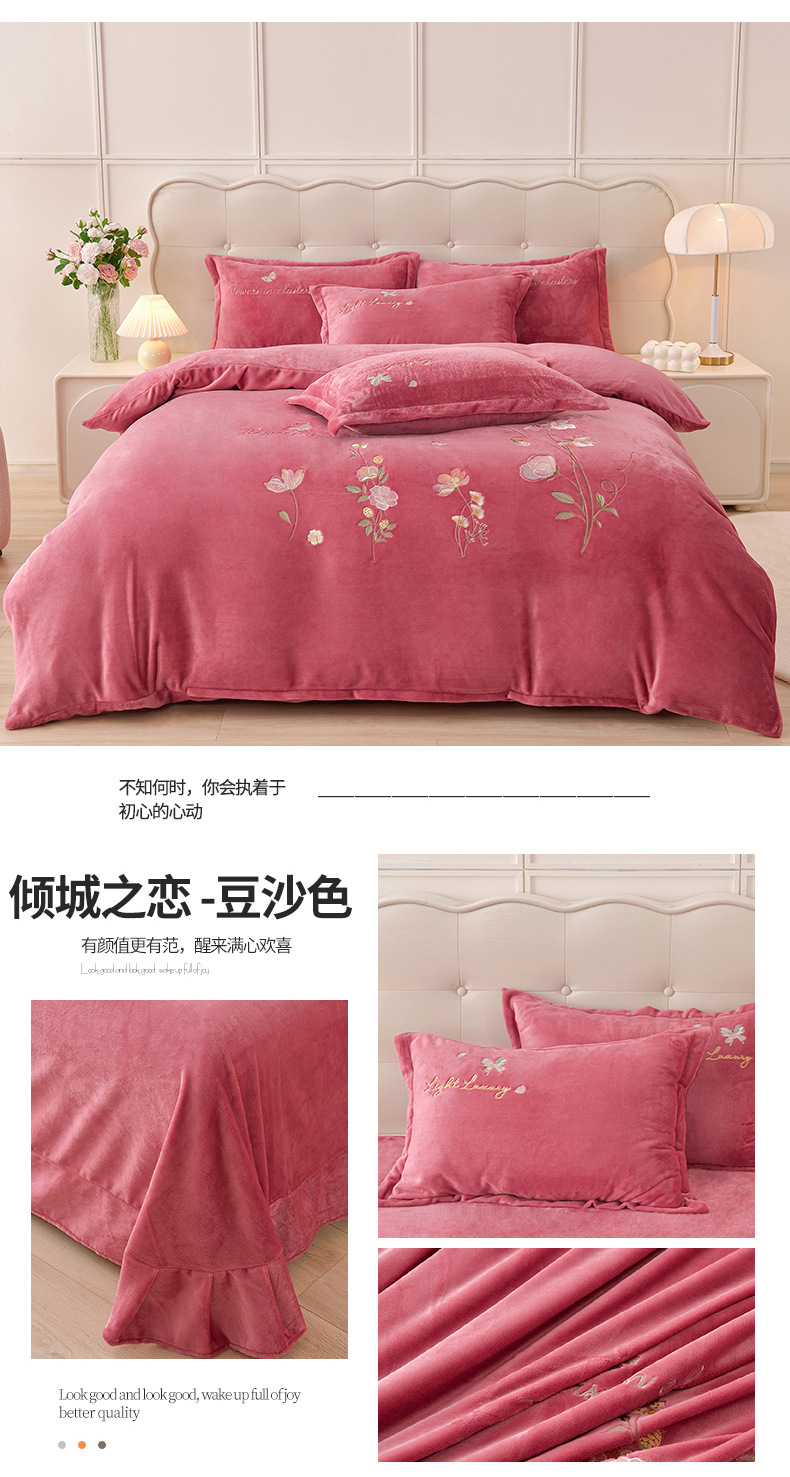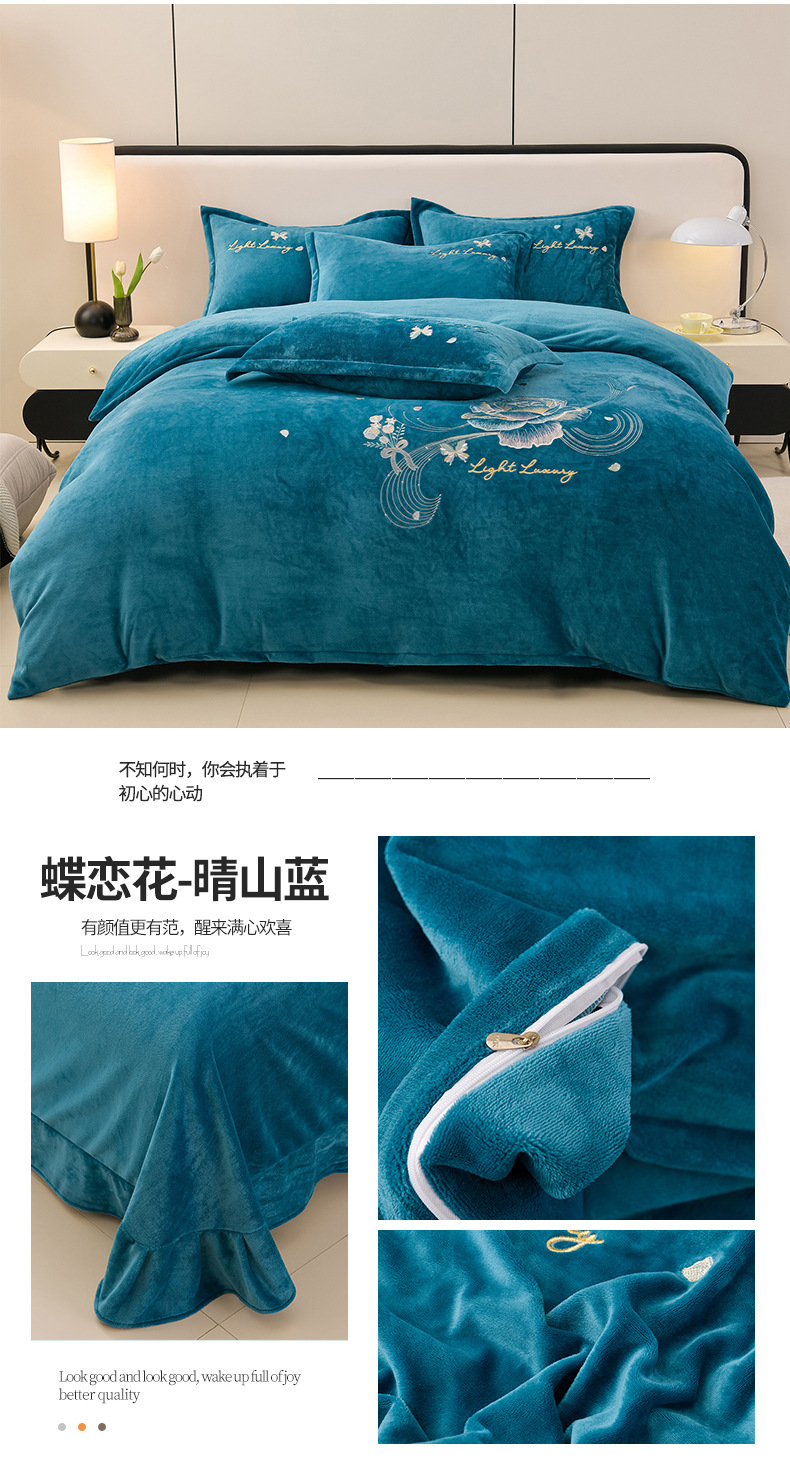 厚いミルクの毛の4つのセットを生放送します。冬の保温寝具の両面の毛の刺繍の4つのセットです。