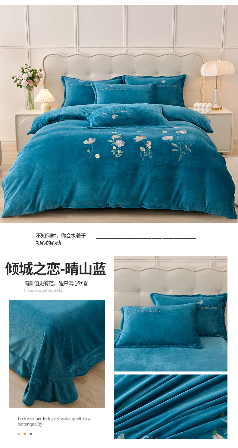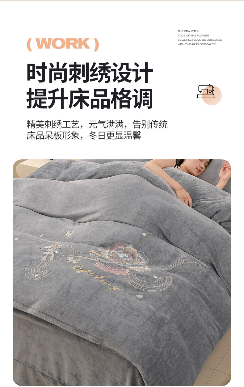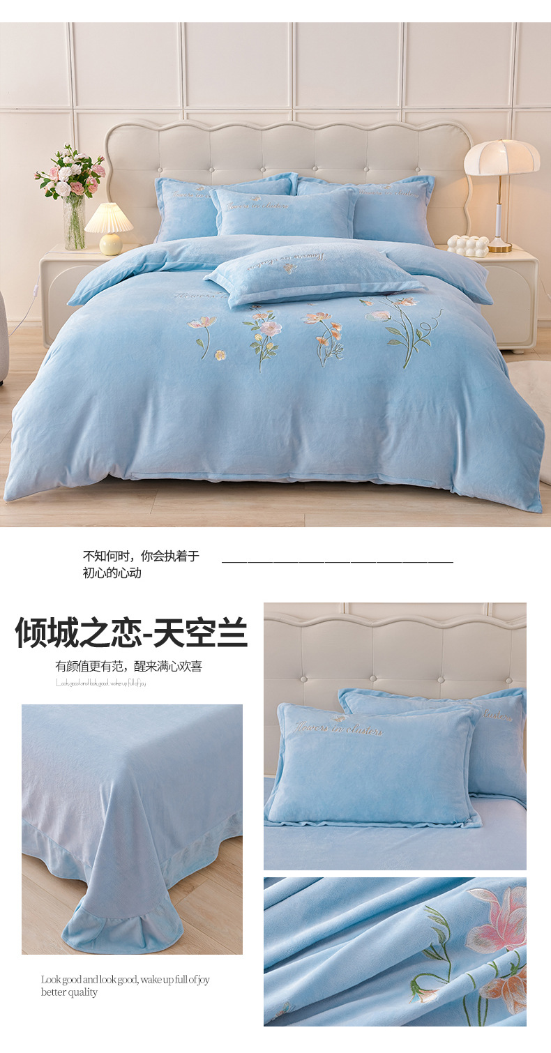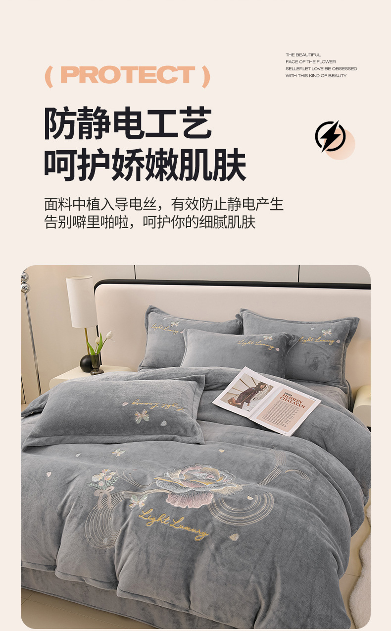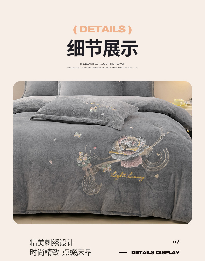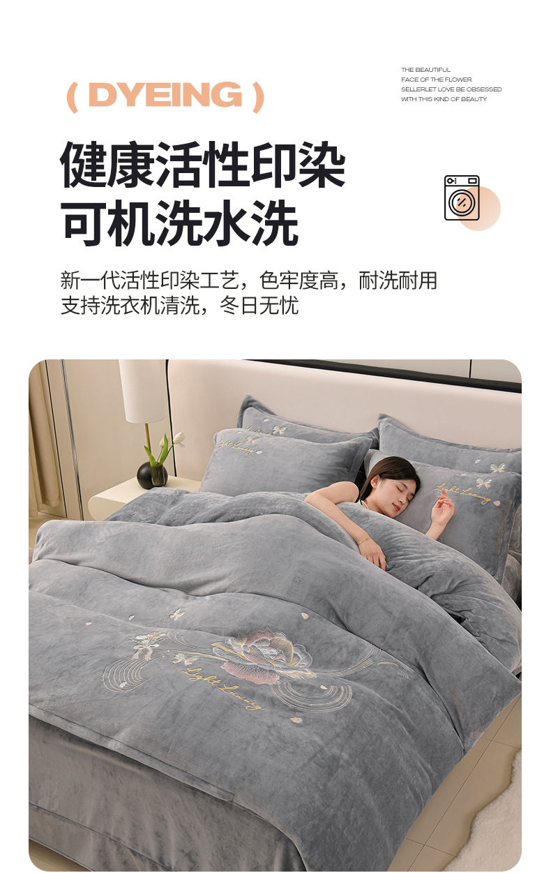 厚いミルクの毛の4つのセットを生放送します。冬の保温寝具の両面の毛の刺繍の4つのセットです。