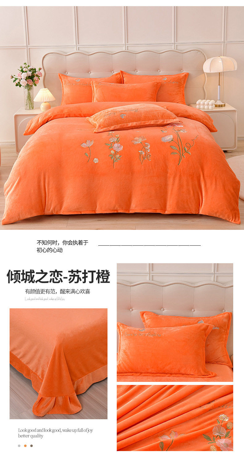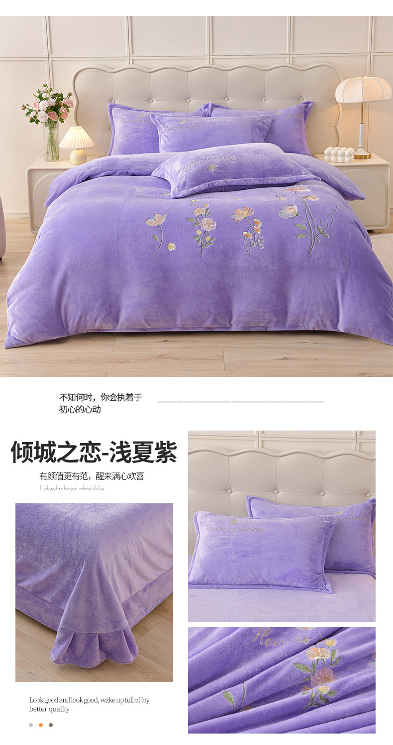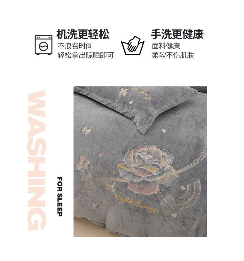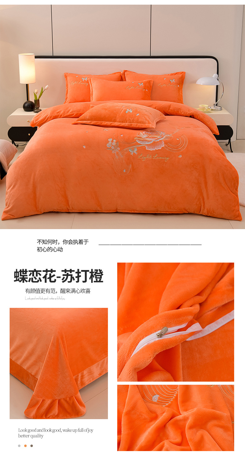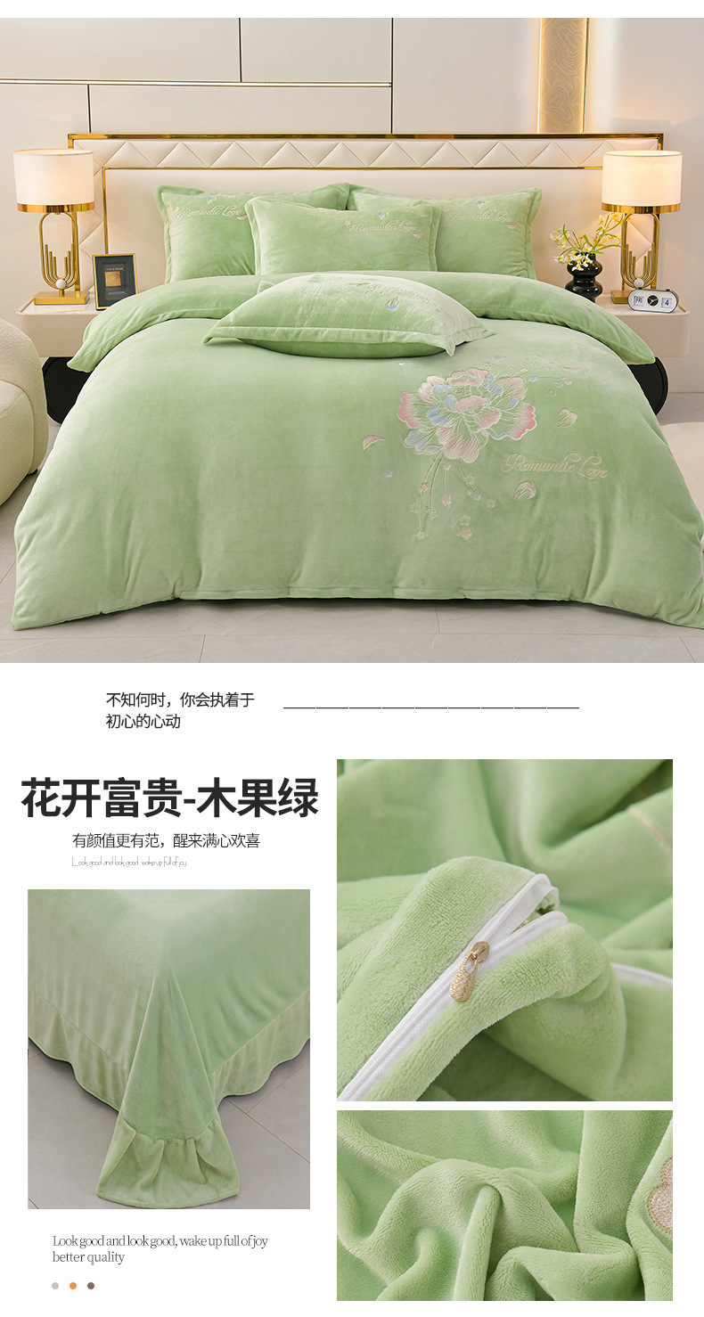厚いミルクの毛の4つのセットを生放送します。冬の保温寝具の両面の毛の刺繍の4つのセットです。