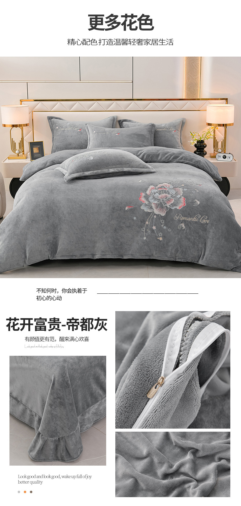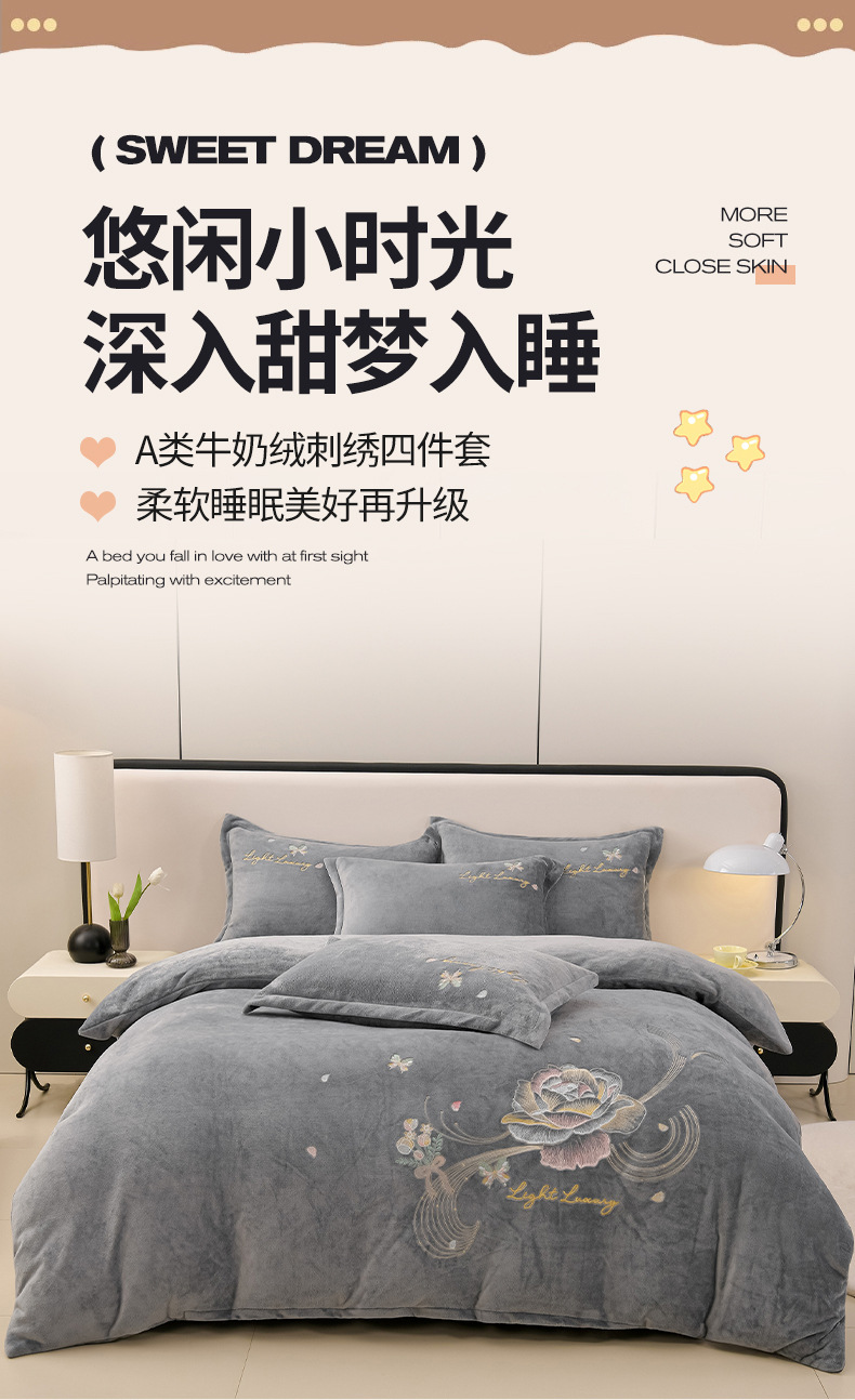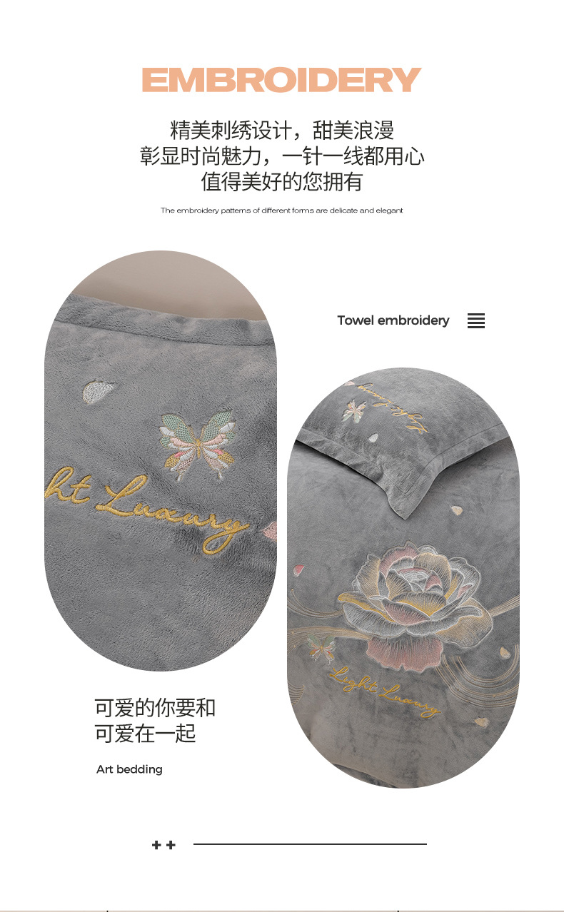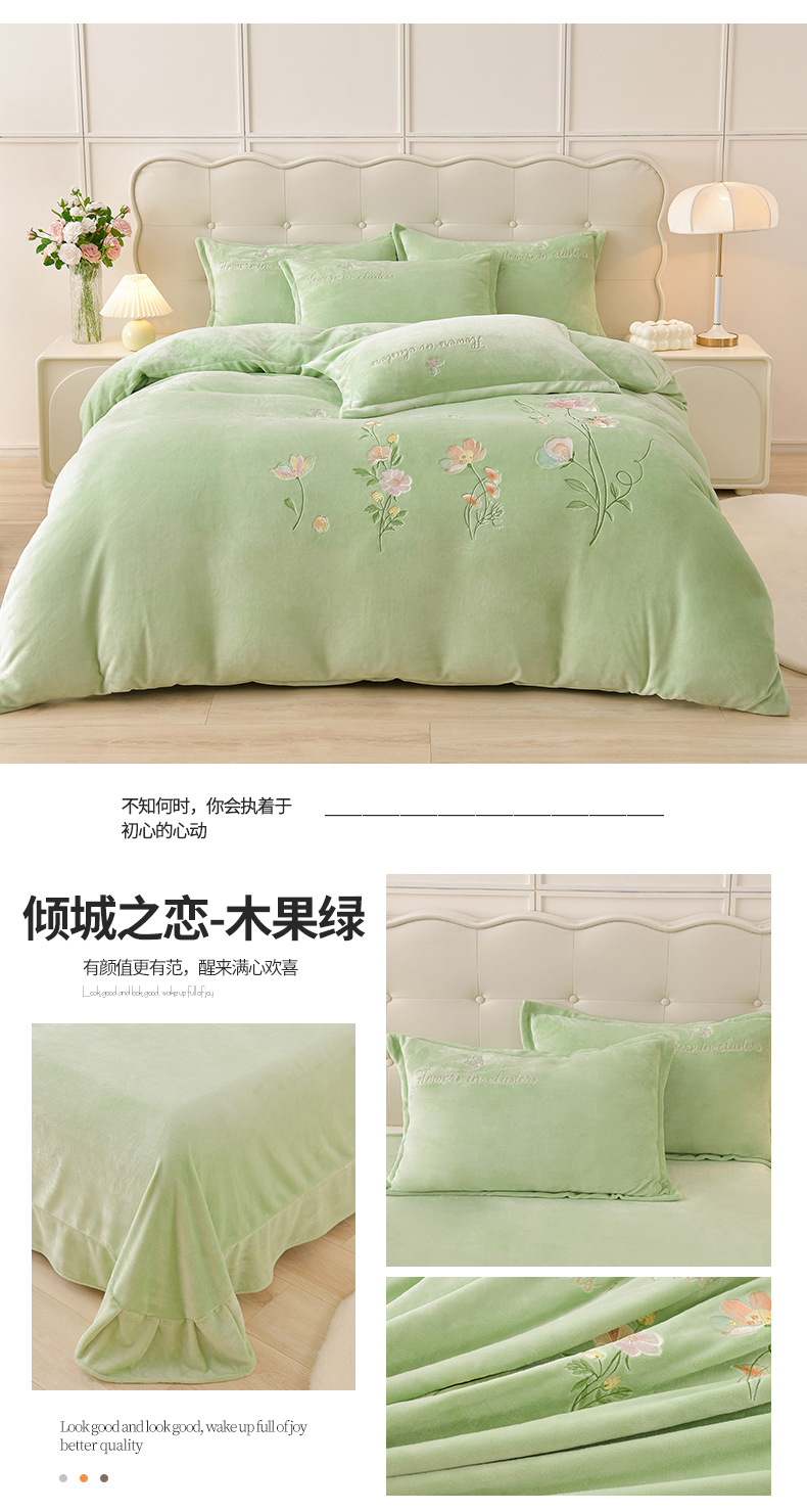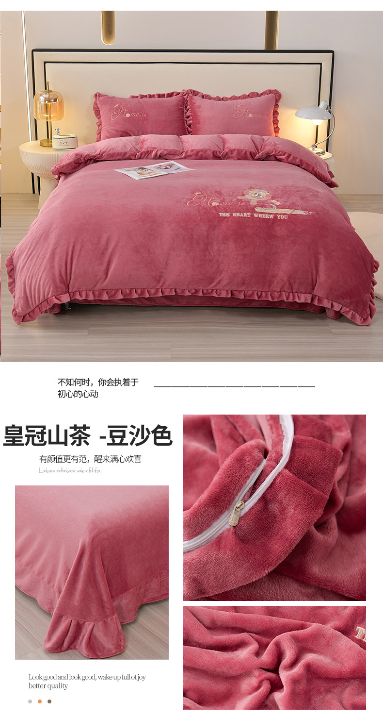 厚いミルクの毛の4つのセットを生放送します。冬の保温寝具の両面の毛の刺繍の4つのセットです。