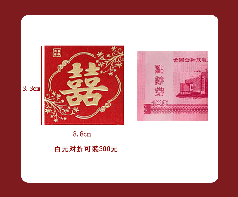 サイズ 1枚(半分に折った100元) 8.8×8.8cm