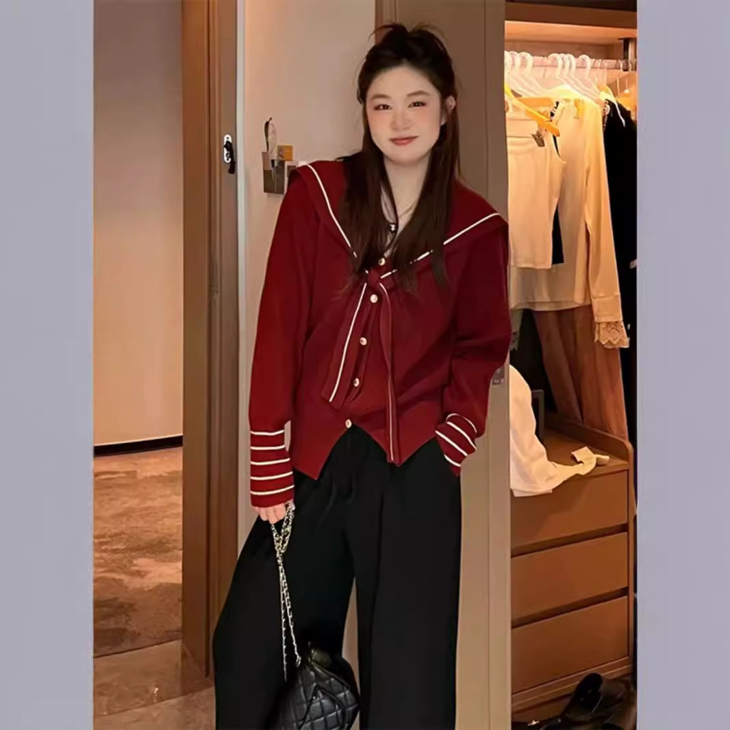 大きいサイズの太った妹の韓系の優しい風の柔らかいモチモチとしたニットのカーディガン