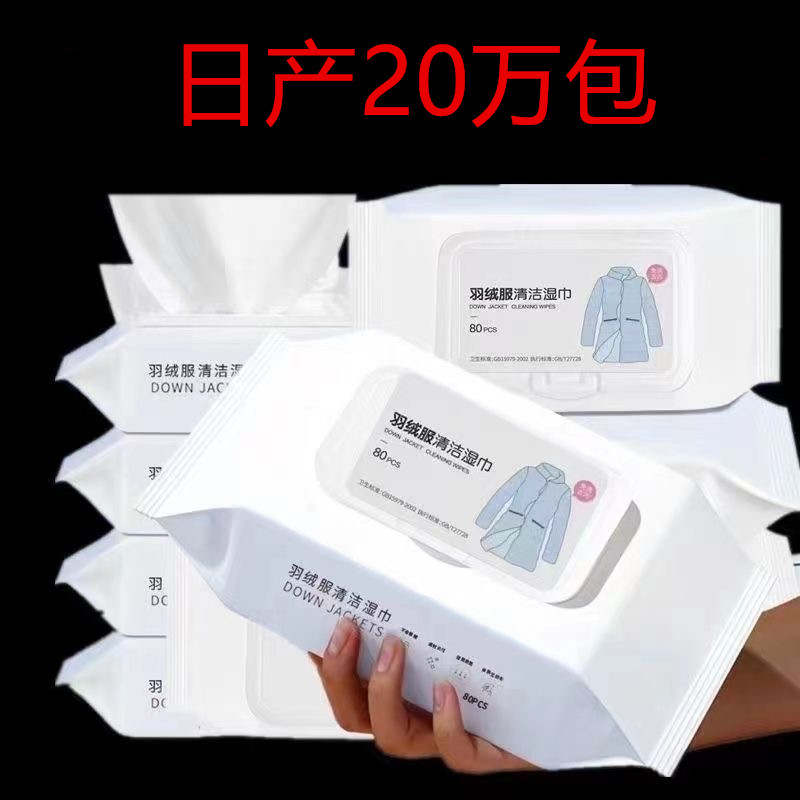 羽绒服湿巾免水洗擦拭去污去油渍80抽大包湿纸巾便携小包清洁神器