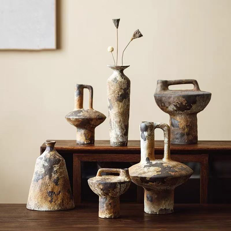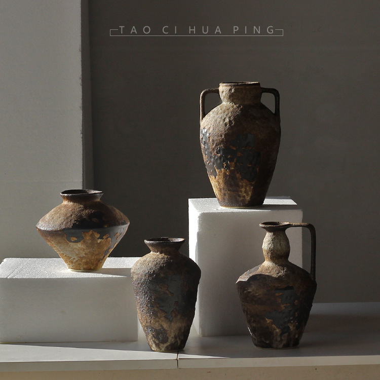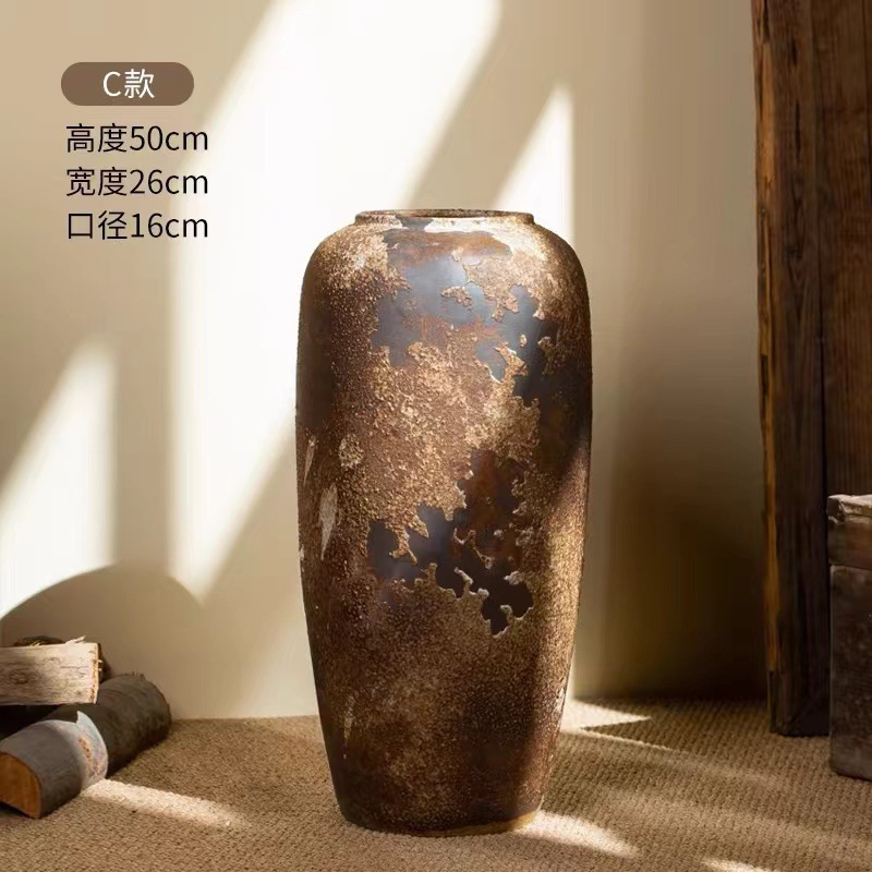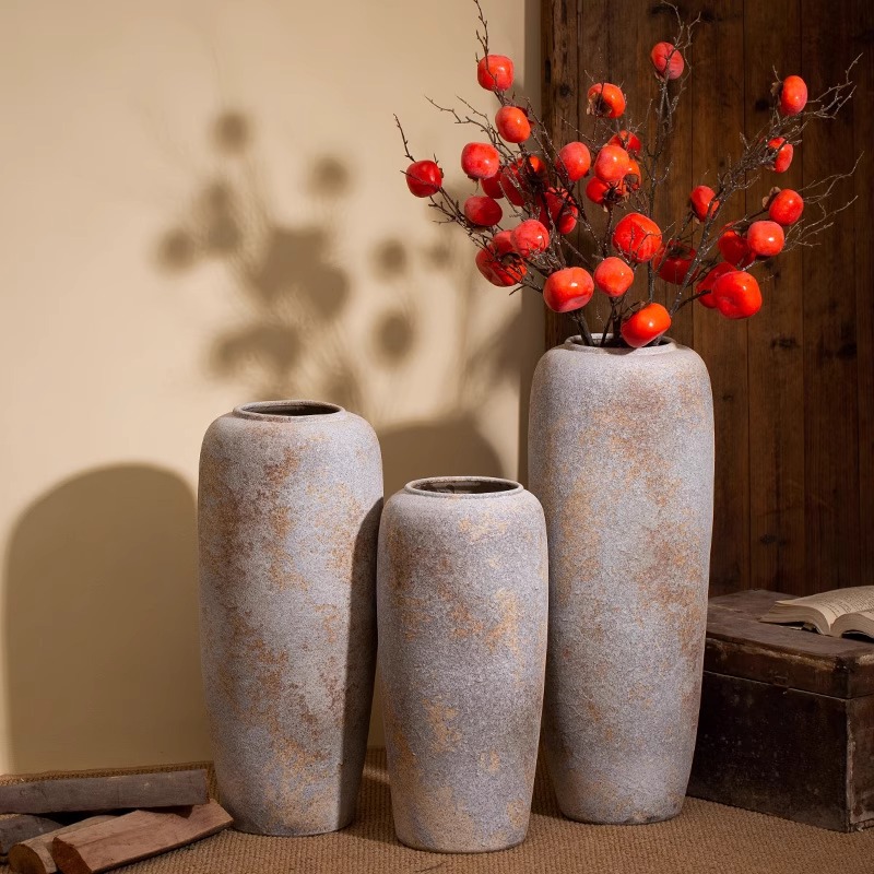 着地大花瓶レトロ粗陶寂風陶磁器置物客間生け花器高モデル陶缶装飾