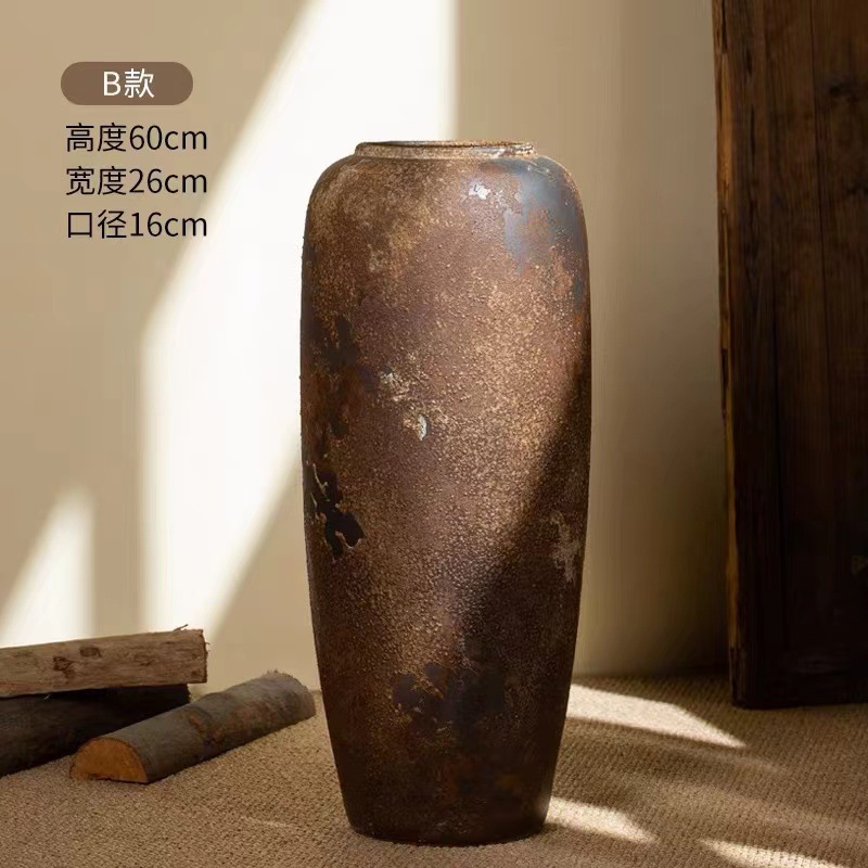 侘寂风落地大花瓶陶瓷摆件客厅插花复古粗陶高陶罐民宿装饰