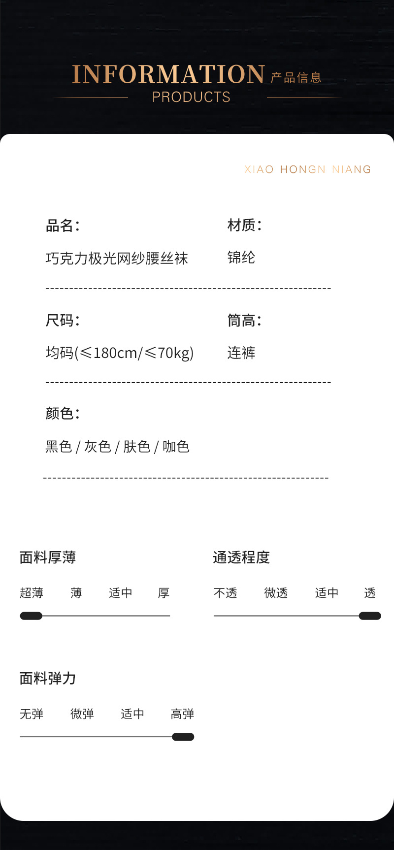 0.01網糸腰極光360シームレス深い股ストッキング女性チョコレート糸滑り夏黒糸油亮パンスト