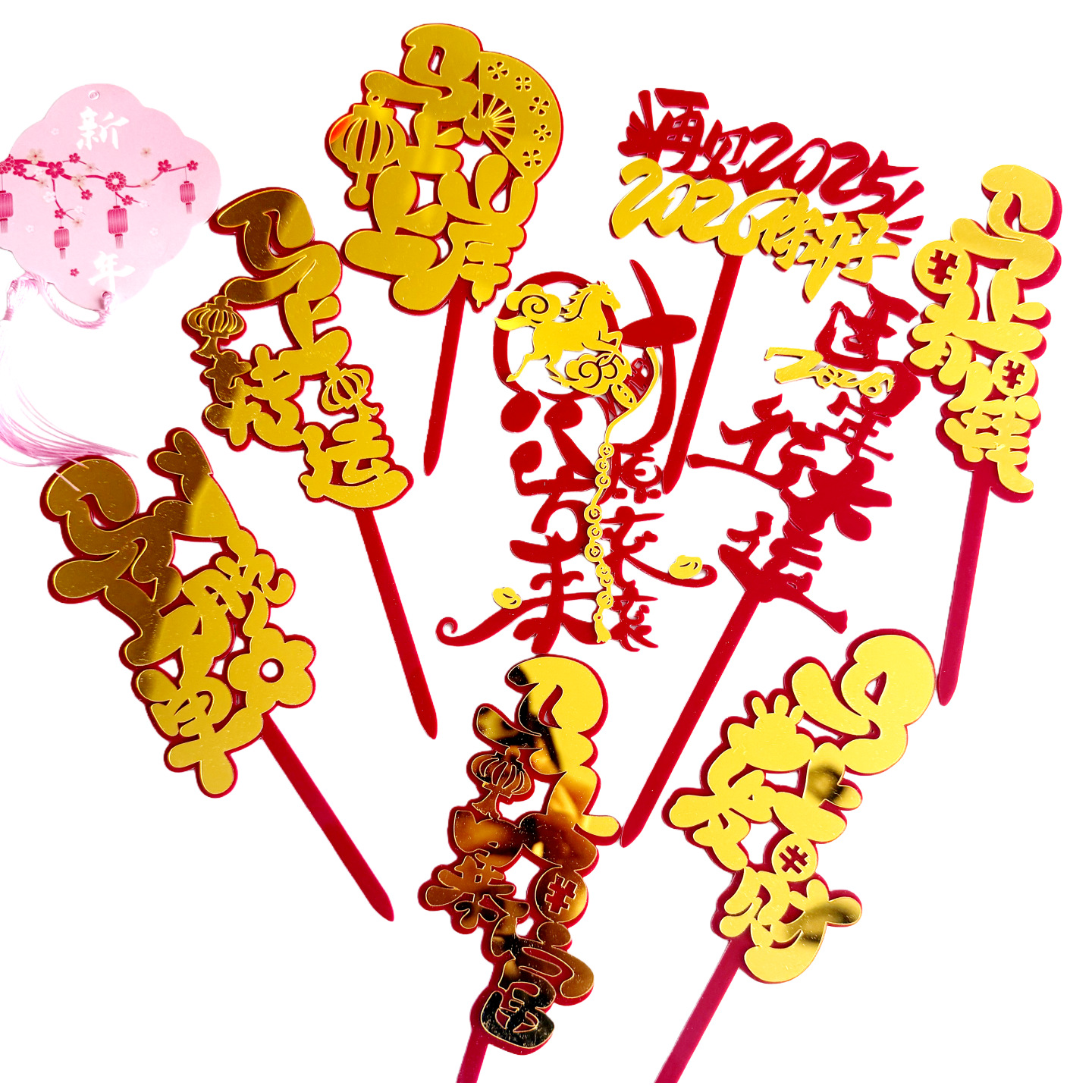2026年馬年 中国風アクリルケーキデコレーション すぐに金持ちになる 新年パーティー用品 ケーキインサート
