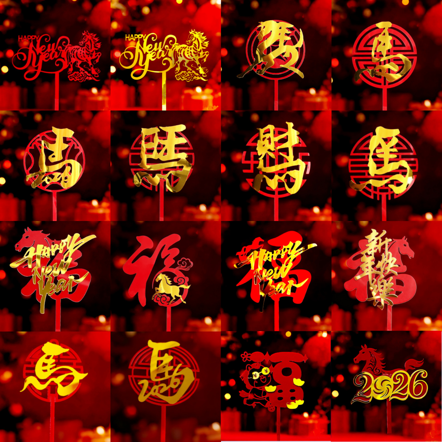 2026马年新年亚克力蛋糕装饰跨年马年福字新年派对用品蛋糕插件