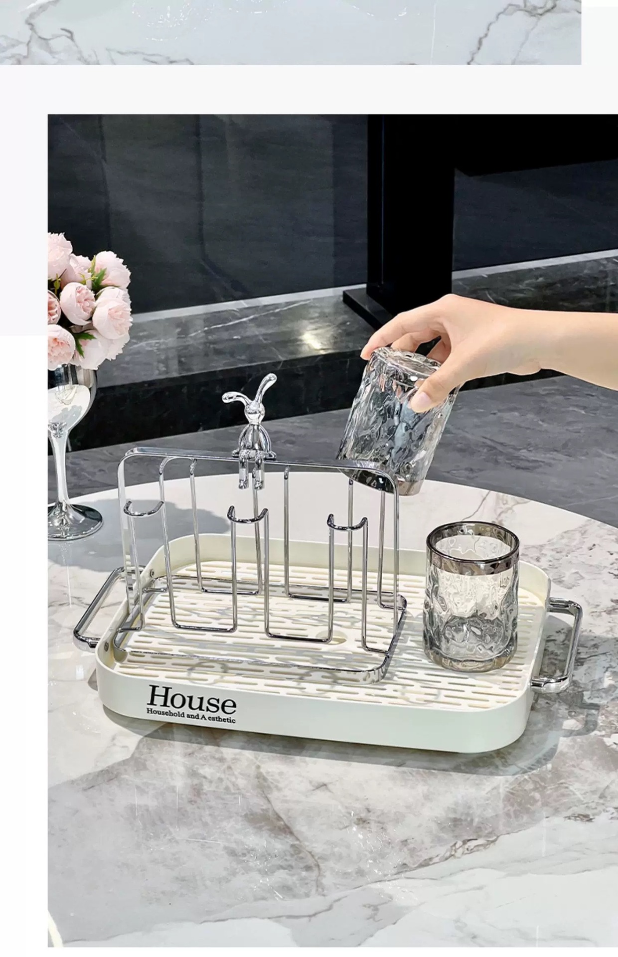 ネットの赤い人気のマグカップの水切りのコップの棚の家庭用の客間のグラスの棚の水杯の収納のコップの棚のトレーの置物