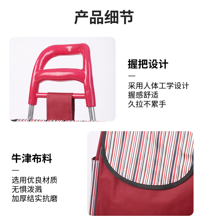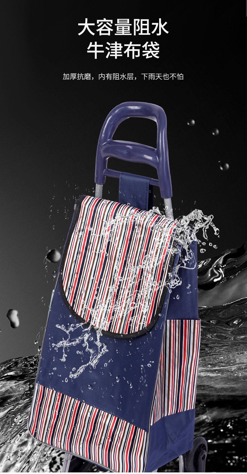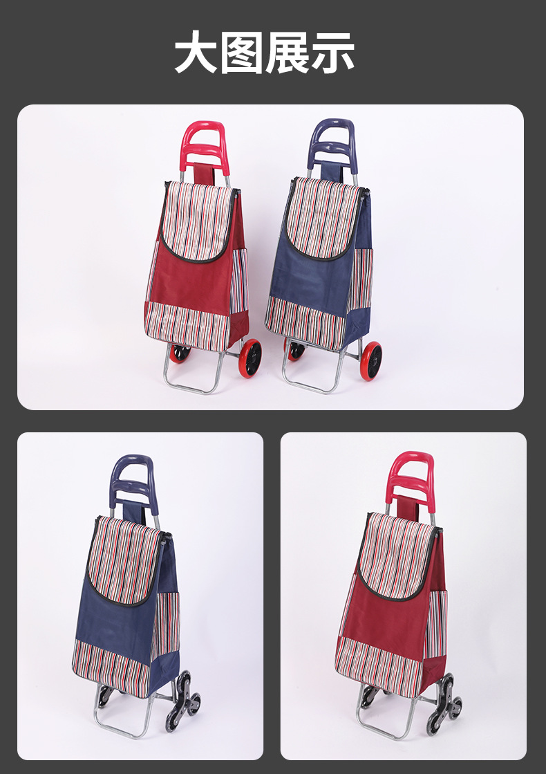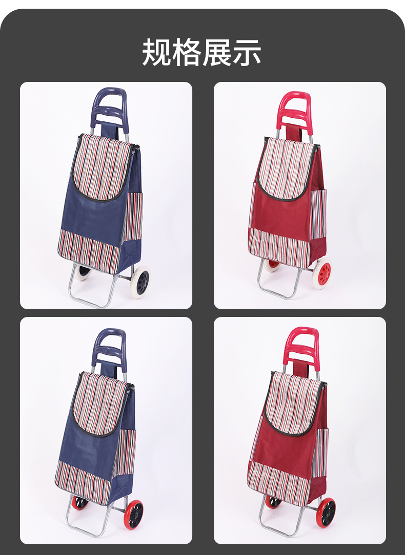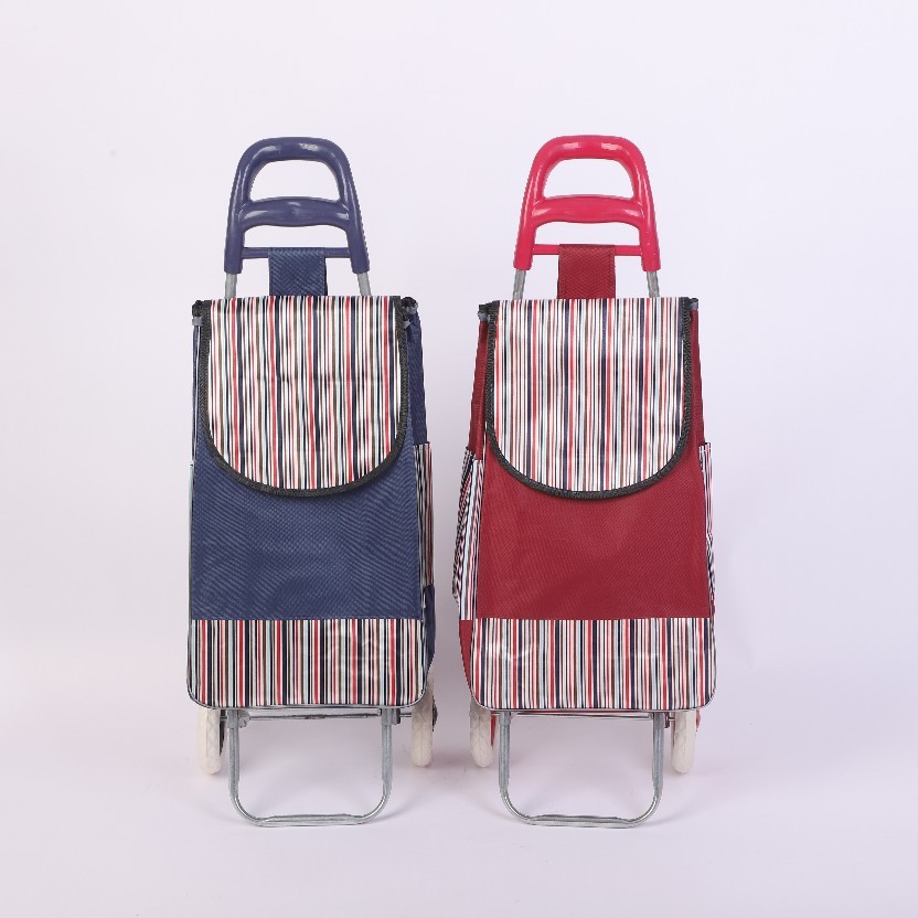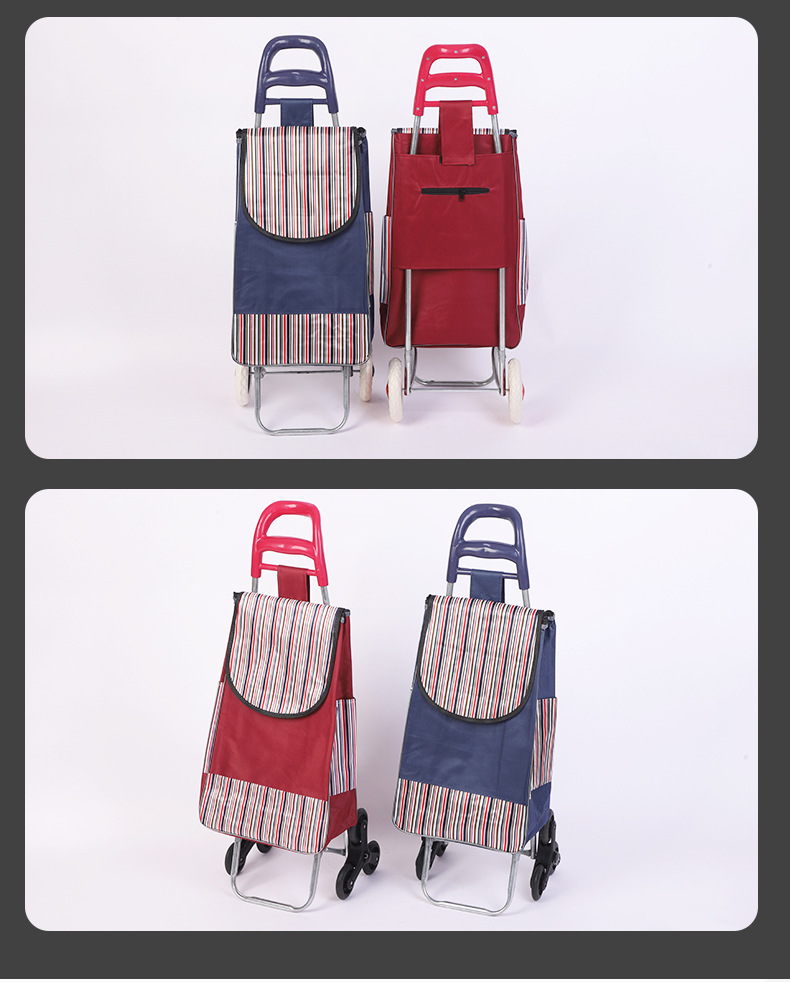 スーパーマーケット用収納式ショッピングカート、買い物用ストライプ柄小型カート、大容量布製カート、階段昇降用折りたたみ式カート