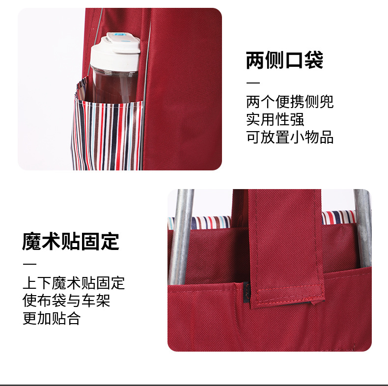 スーパーの物置は軽くて縦条のショッピングカートを引っ張って野菜のストライプの小さい車の大容量の布のポケットのショッピングカートを買います。