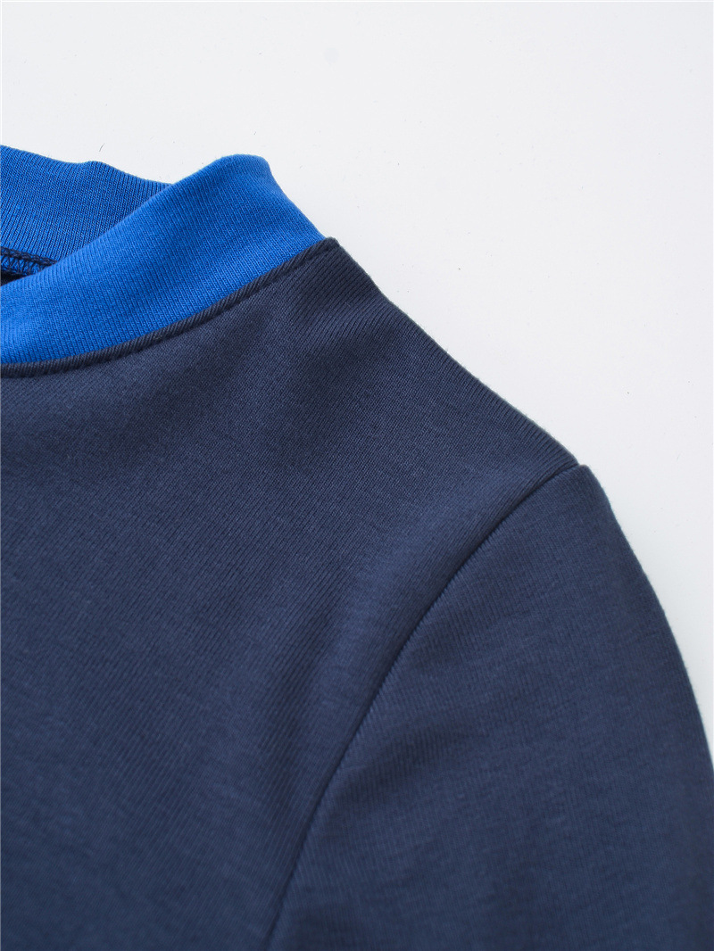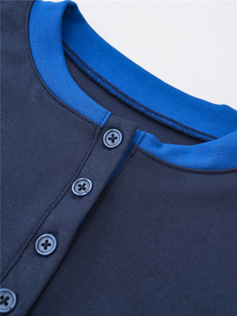 DO2441-24の秋の新型フランス学院風の色合わせは丸首のボタンの長袖のカジュアルな底のtシャツをつなぎ合わせます。