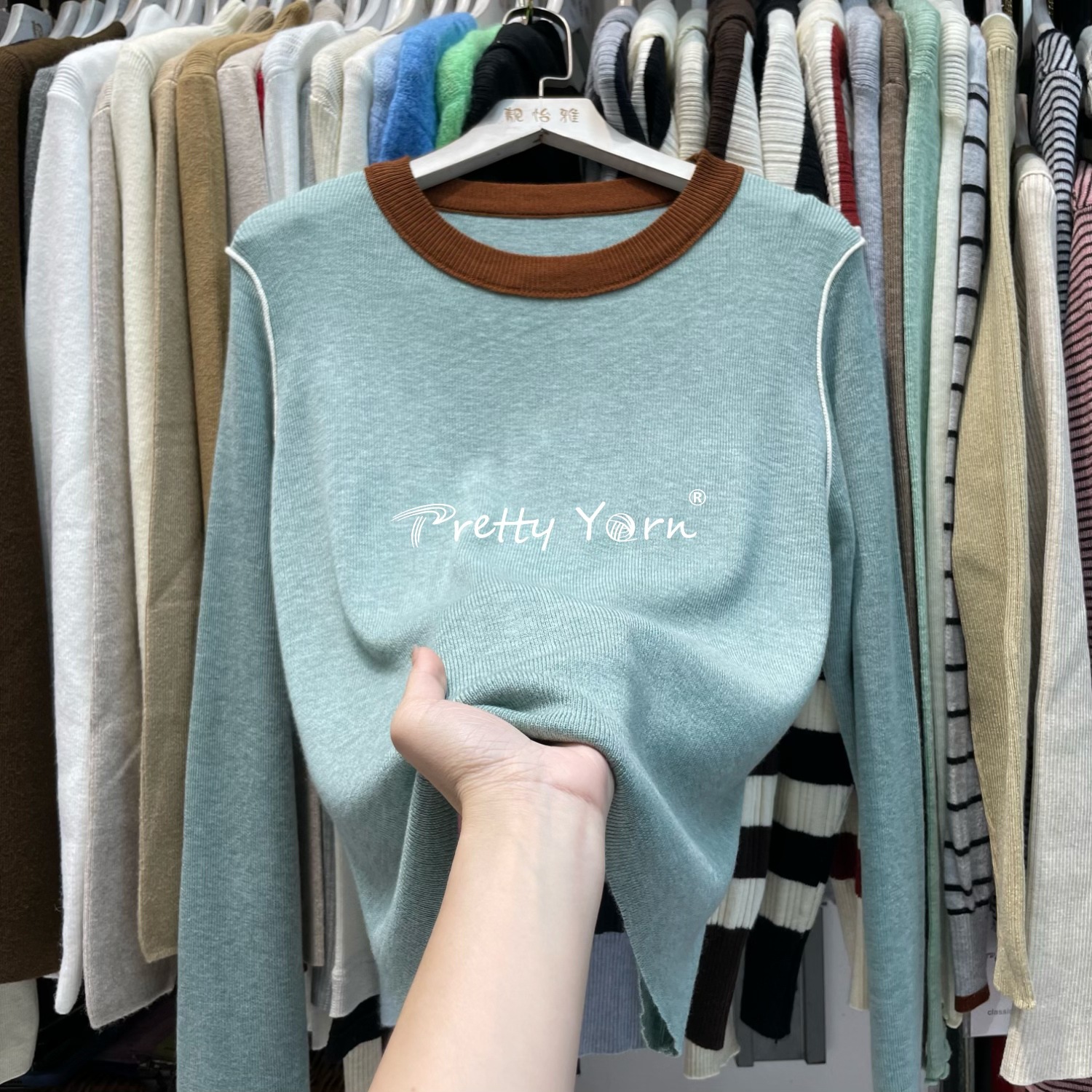 詩集のようなデザイン感、コントラストカラー、スリムフィット、秋冬用インナーウェア、ウール素材のレディースニットトップス