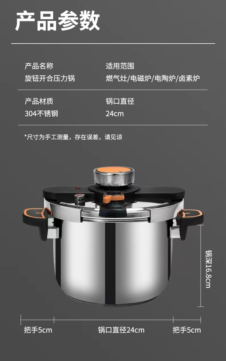 ノブ式圧力鍋、304ステンレス鋼製、高圧、厚型、防爆、家庭用、ガス対応、安全