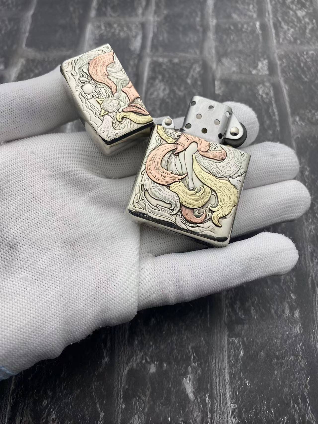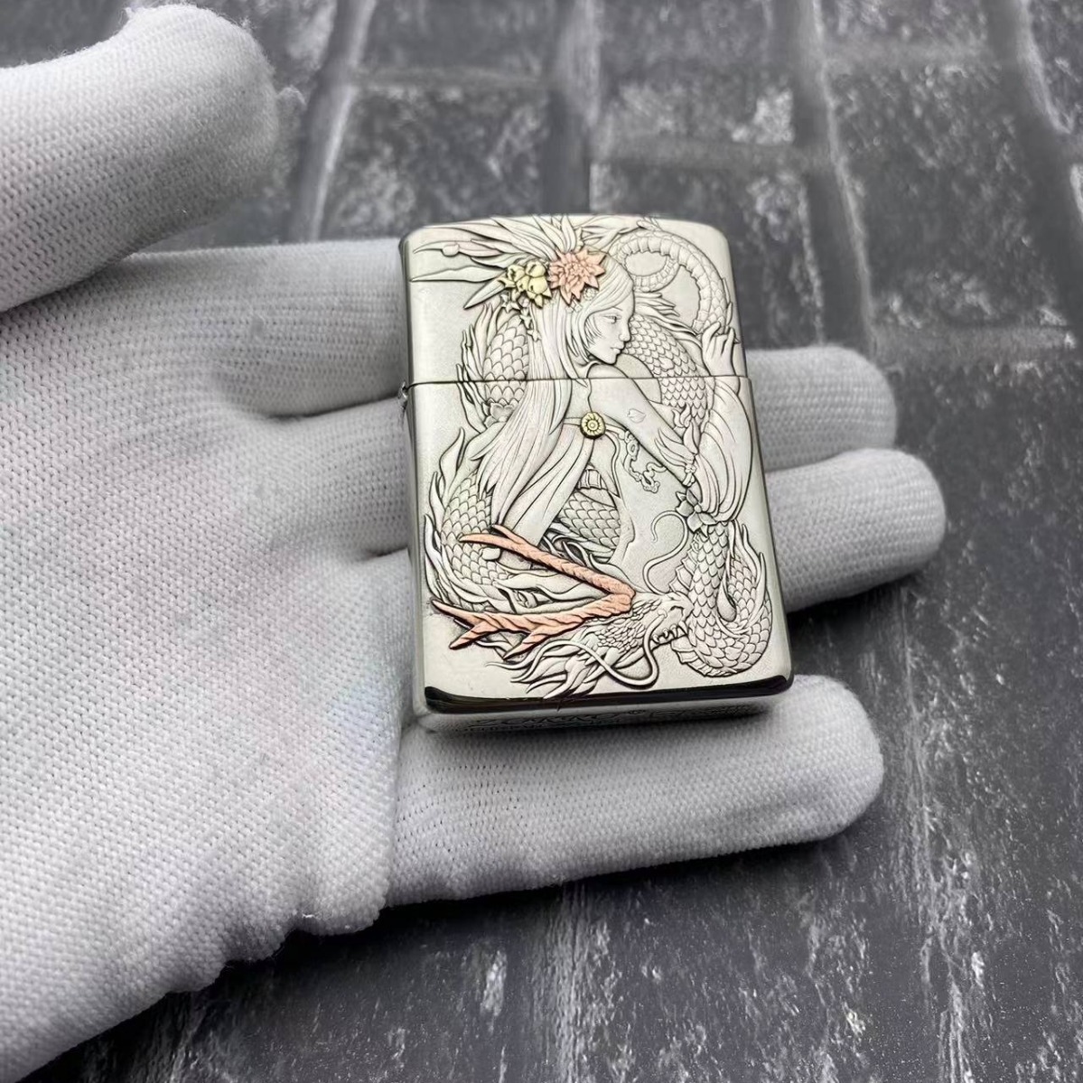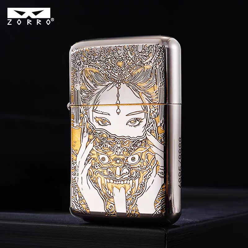 ZORRO佐羅灯油ライター白銅902sモザイク龍女鳳女防風火機卸売り