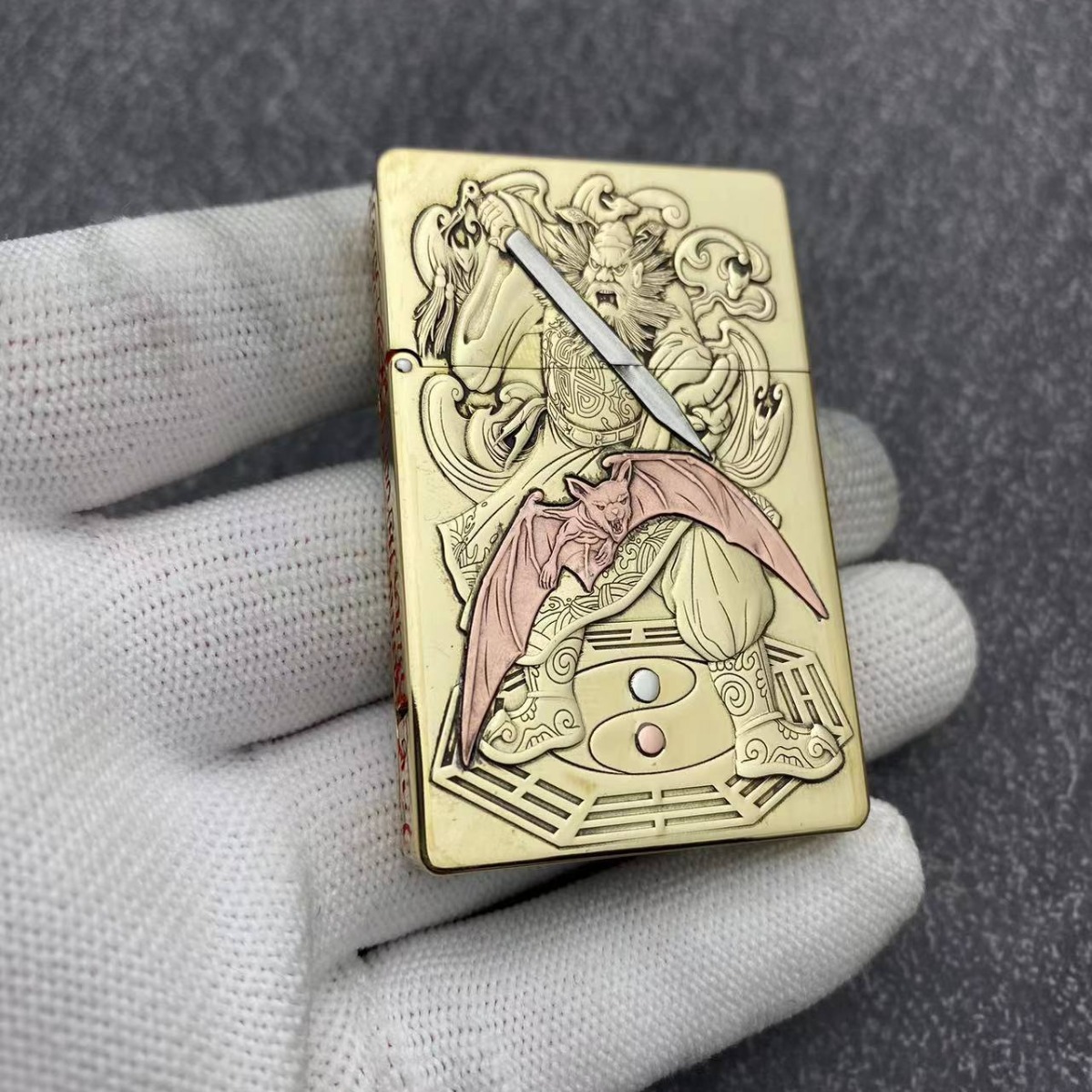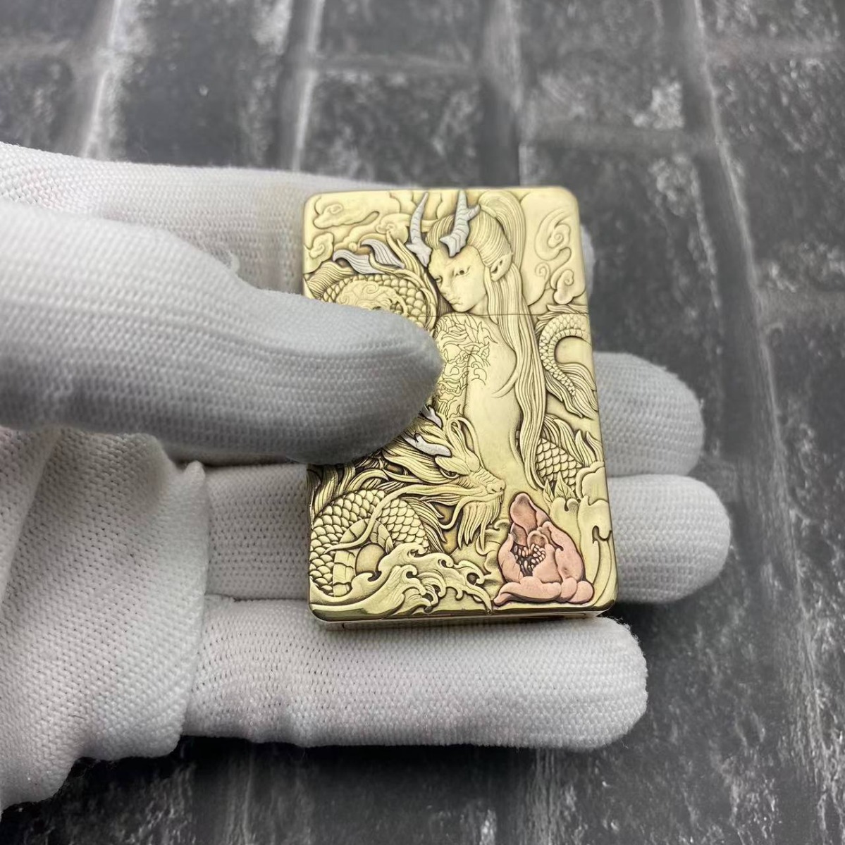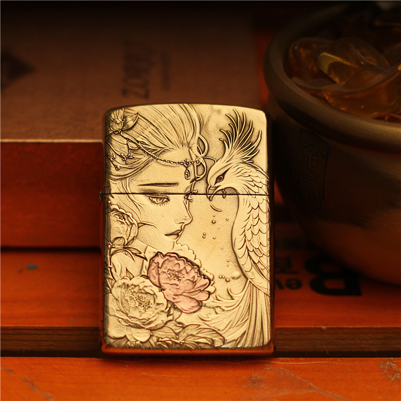 ZORRO佐罗防风煤油打火机黄铜盔甲古风人物浮雕牡丹镶嵌直播货源