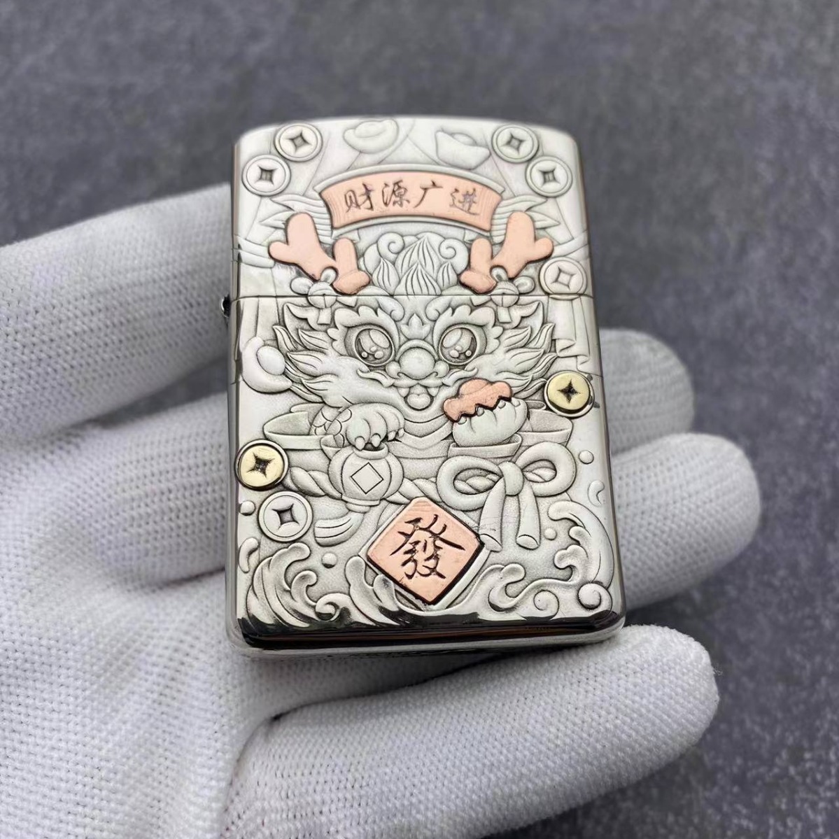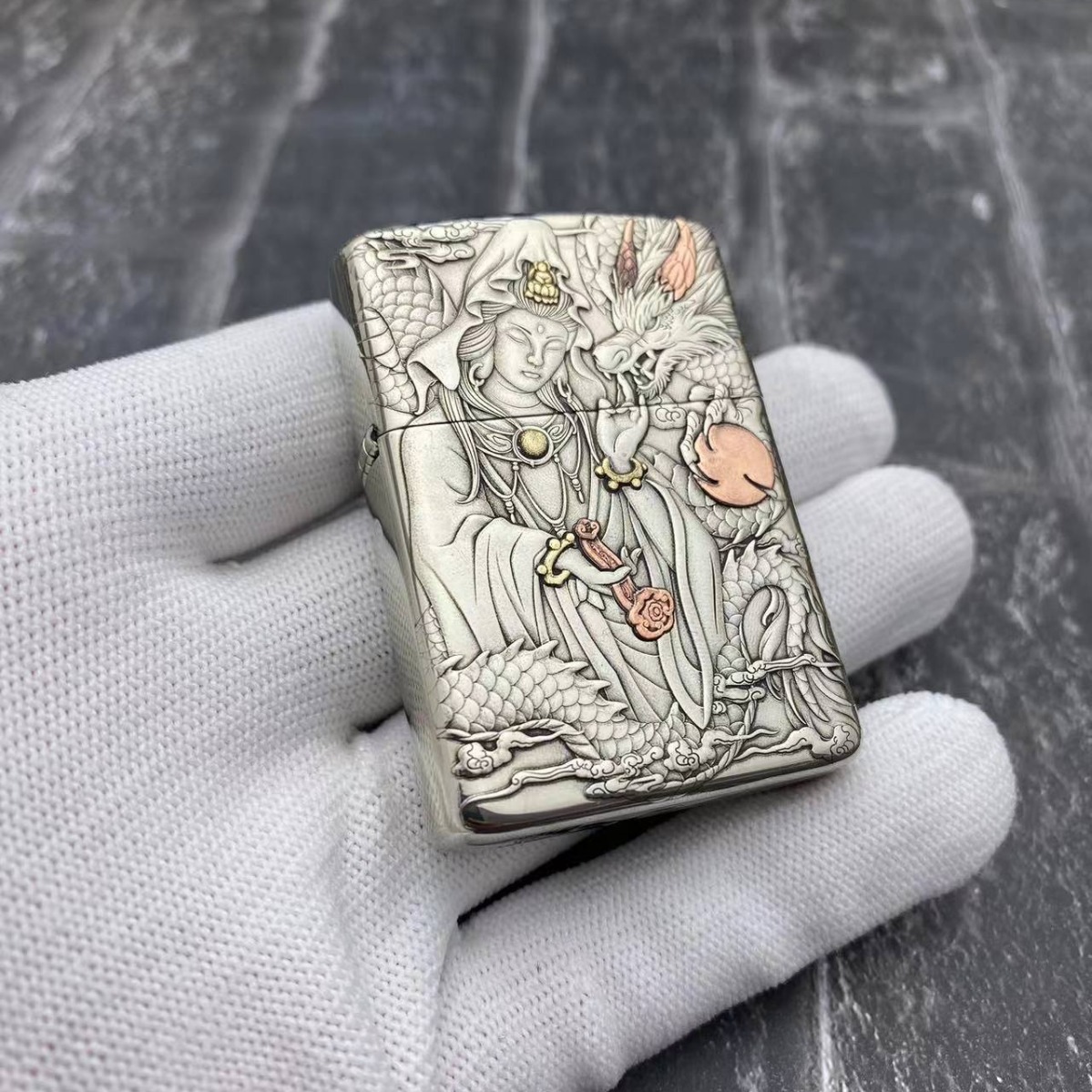 ZORROゾロ灯油ライター白銅902sモザイク御龍観音防風火機卸売り