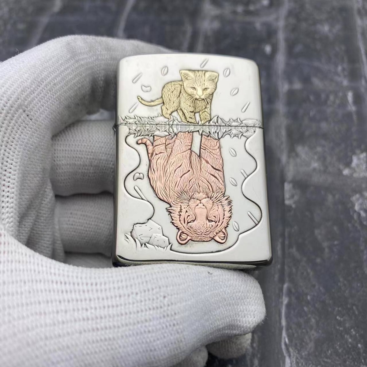 ZORROゾロ灯油ライター白銅902s象眼心あり猛虎防風火機卸