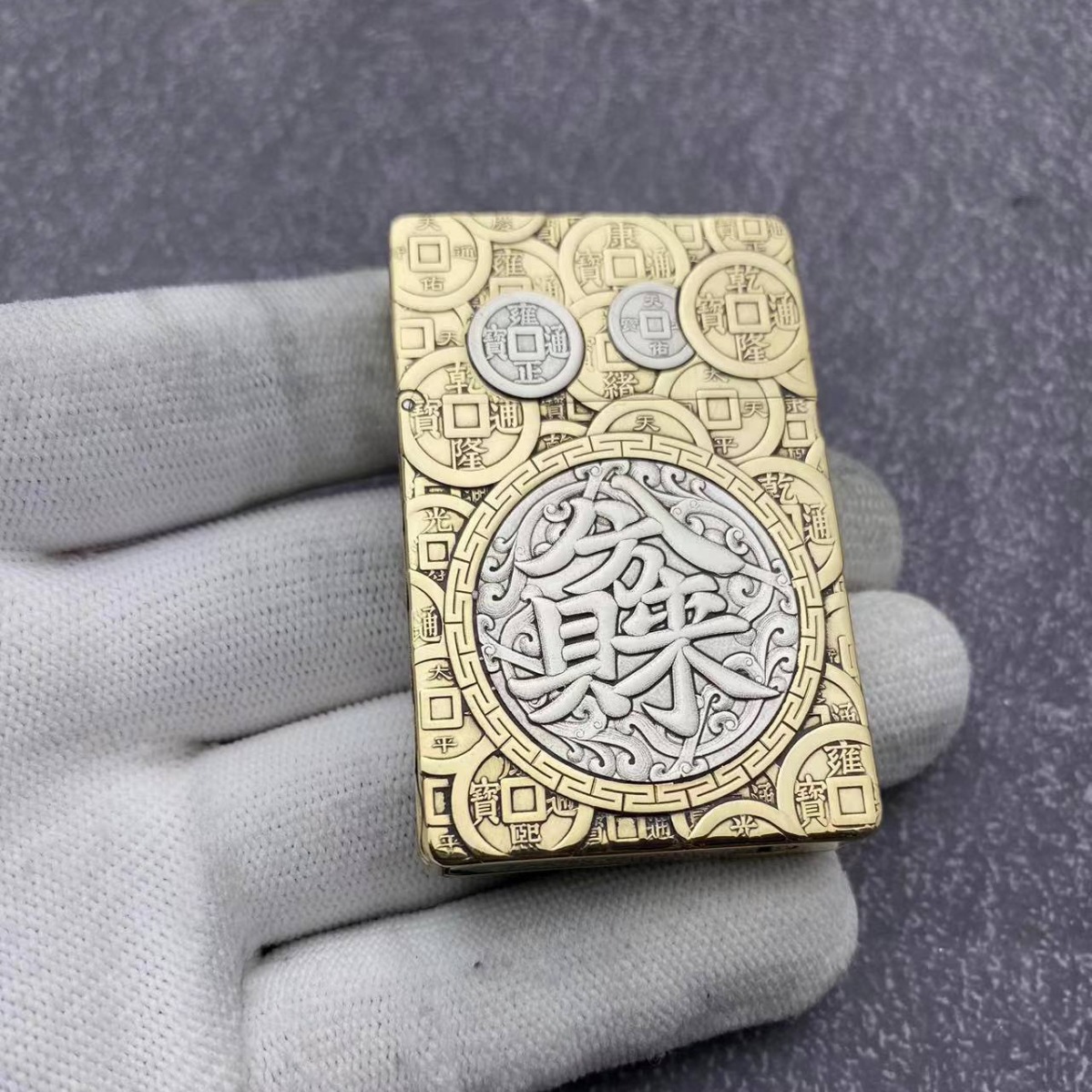 ZORRO佐羅灯油ライター黄銅zl8超薄小重甲モザイク八方来財火機卸売り