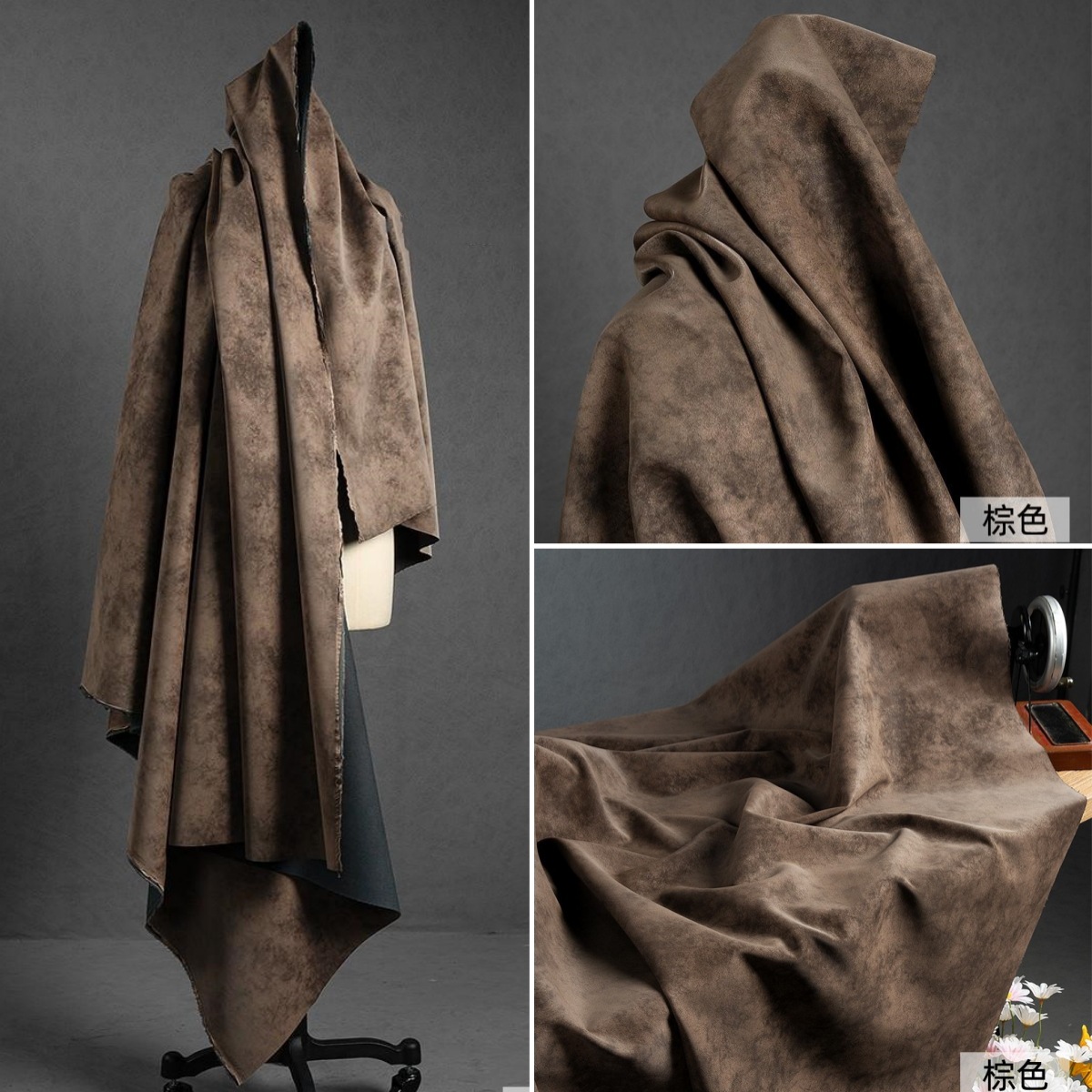 コーヒー色の茶色のレトロな古い2色のベルベット感PU革生地の雪クリーム感柔らかい防水革生地