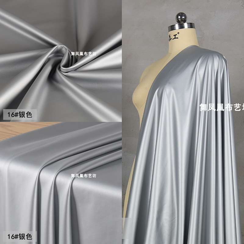 銀灰色のつや消しの4面の高弾力の乳児の皮の材料のシルクは柔らかくて薄い防水の子羊の皮革の布地の布地を滑ります。