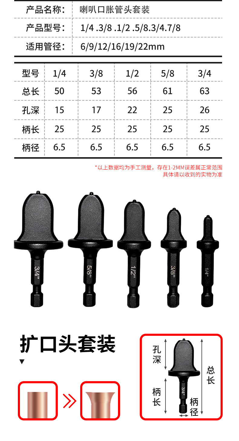 クロスボーダー工場公制インチ膨張管器ハンドドリル拡穴ツールセット冷蔵庫エアコン銅管拡管器セット
