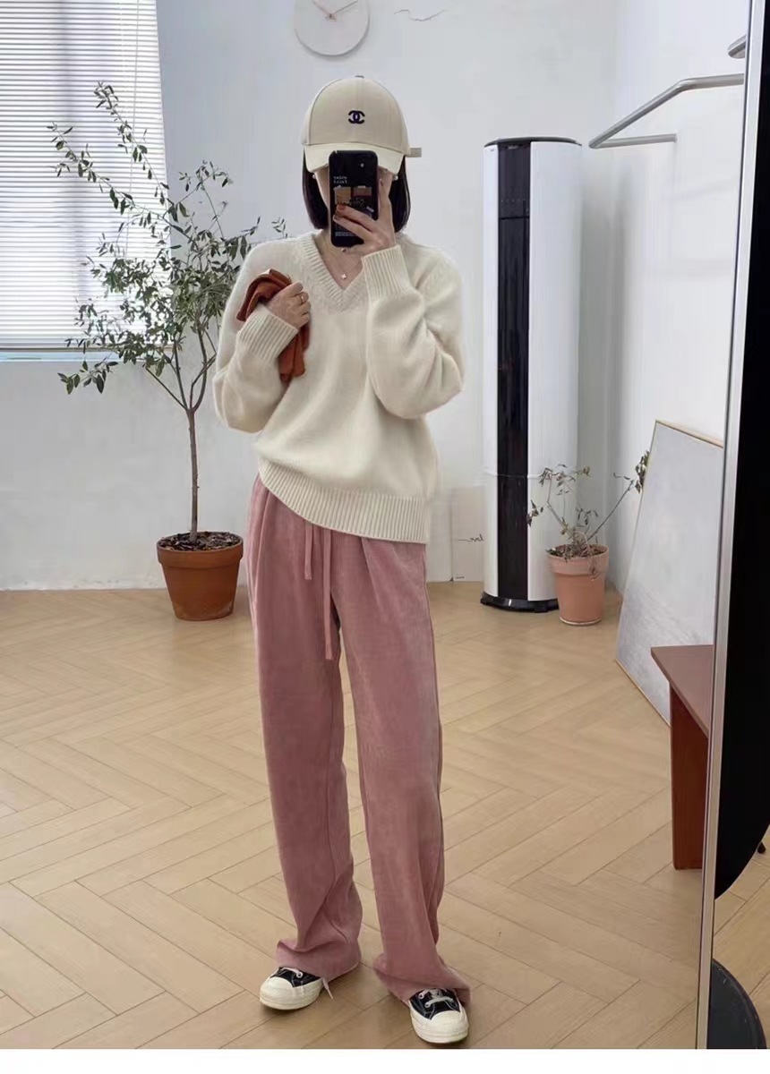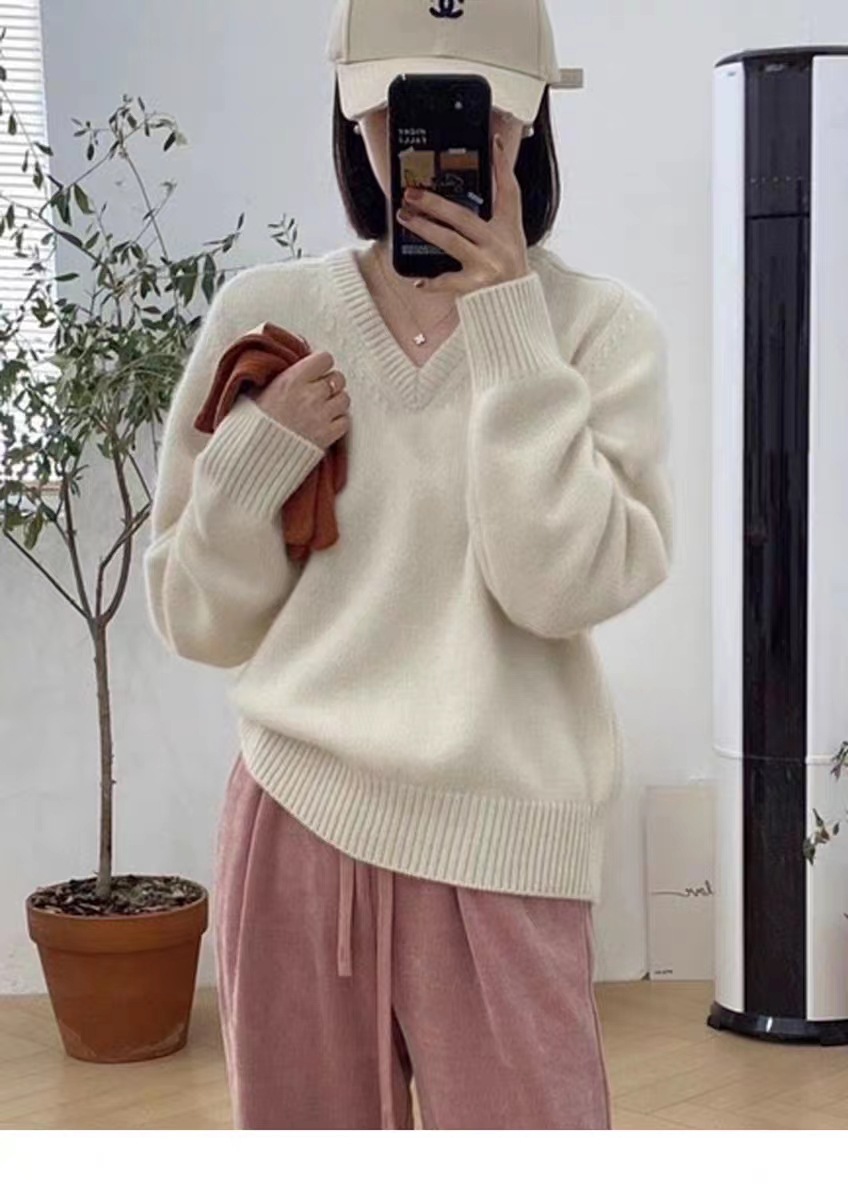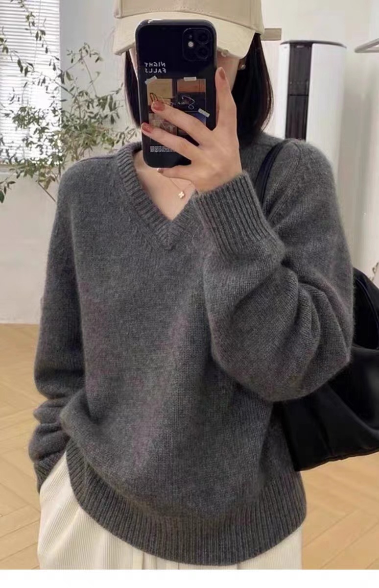 秋冬vネック100セーター長袖プルオーバー