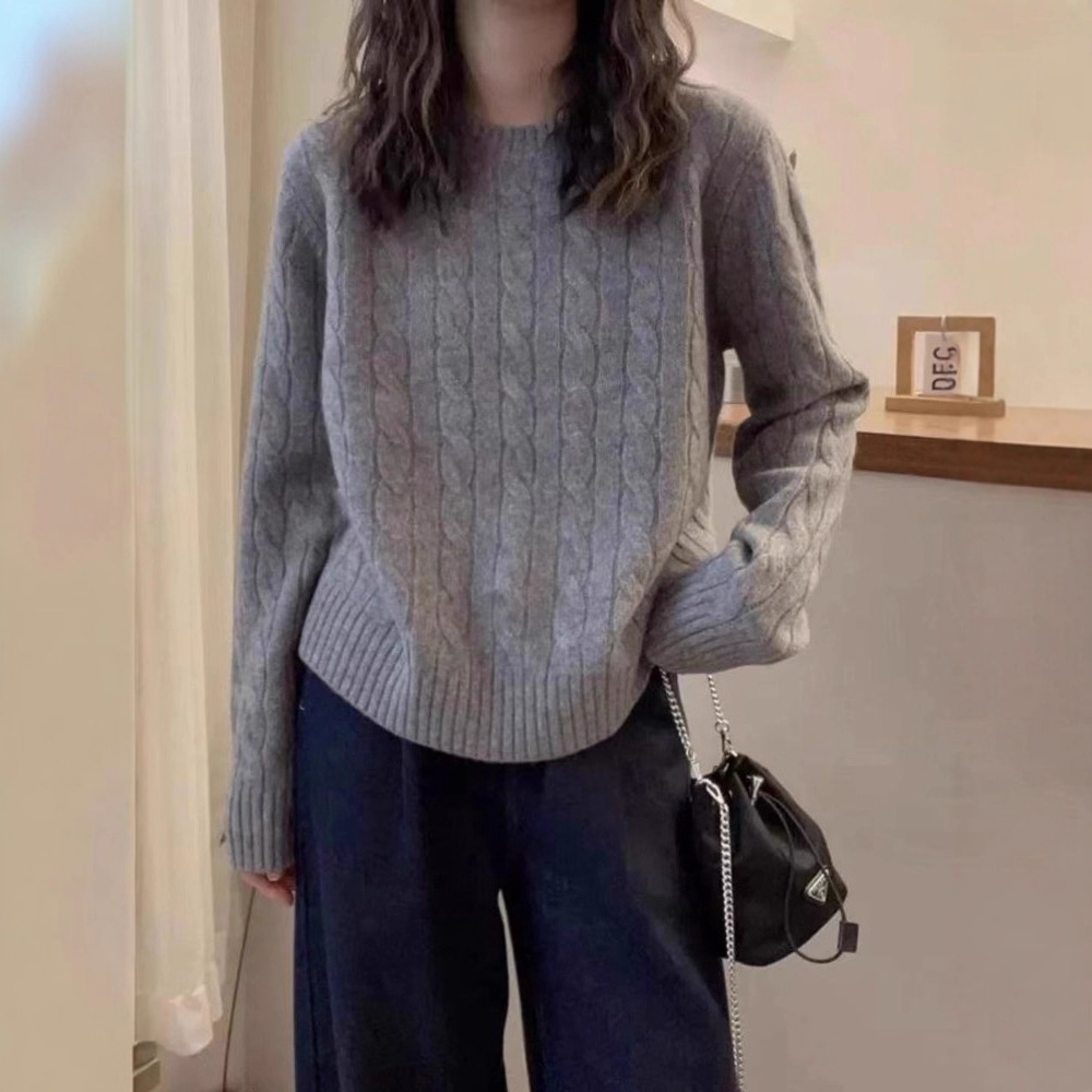 2025秋冬新款女士圆领套头纯羊毛针织衫纯色麻花气质休闲打底毛衣