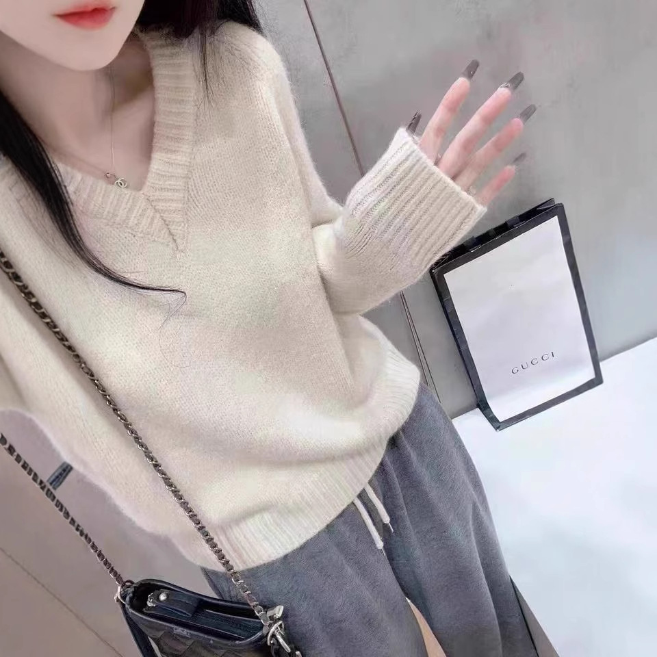 柔らかいモチモチの軽豪華な秋冬の新型の韓国版の女性のウールのvネックの長袖は底を打ってゆったりとしています。