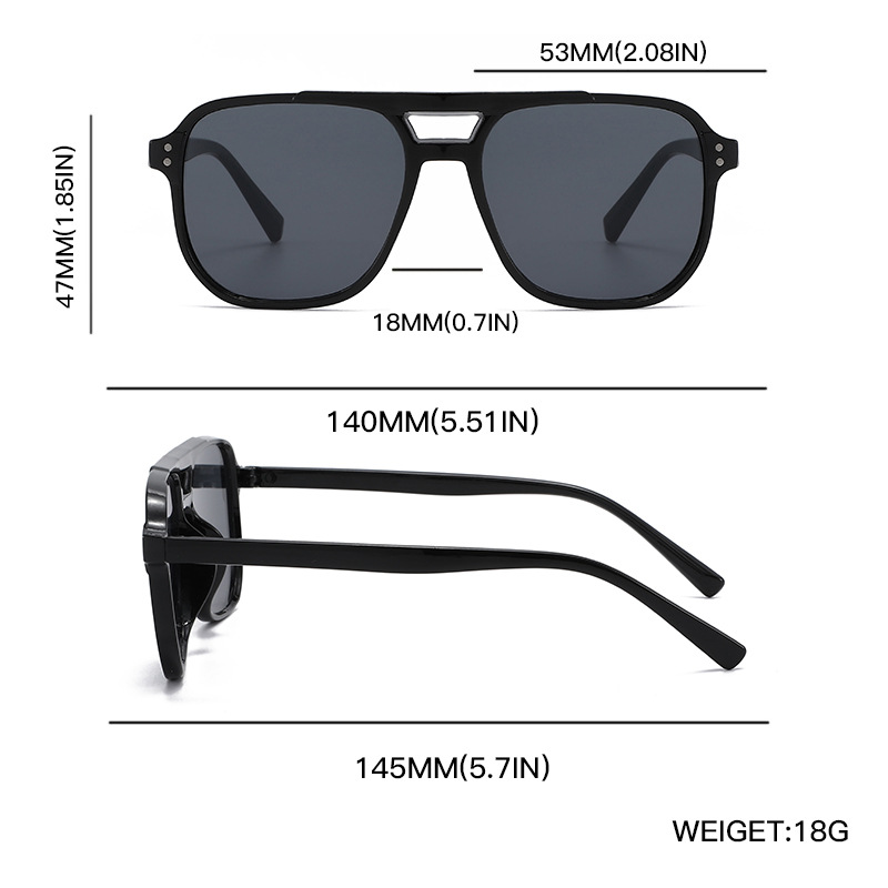 新款跨境方框太阳镜防紫外线女网红复古海洋片双梁米钉飞行员墨镜