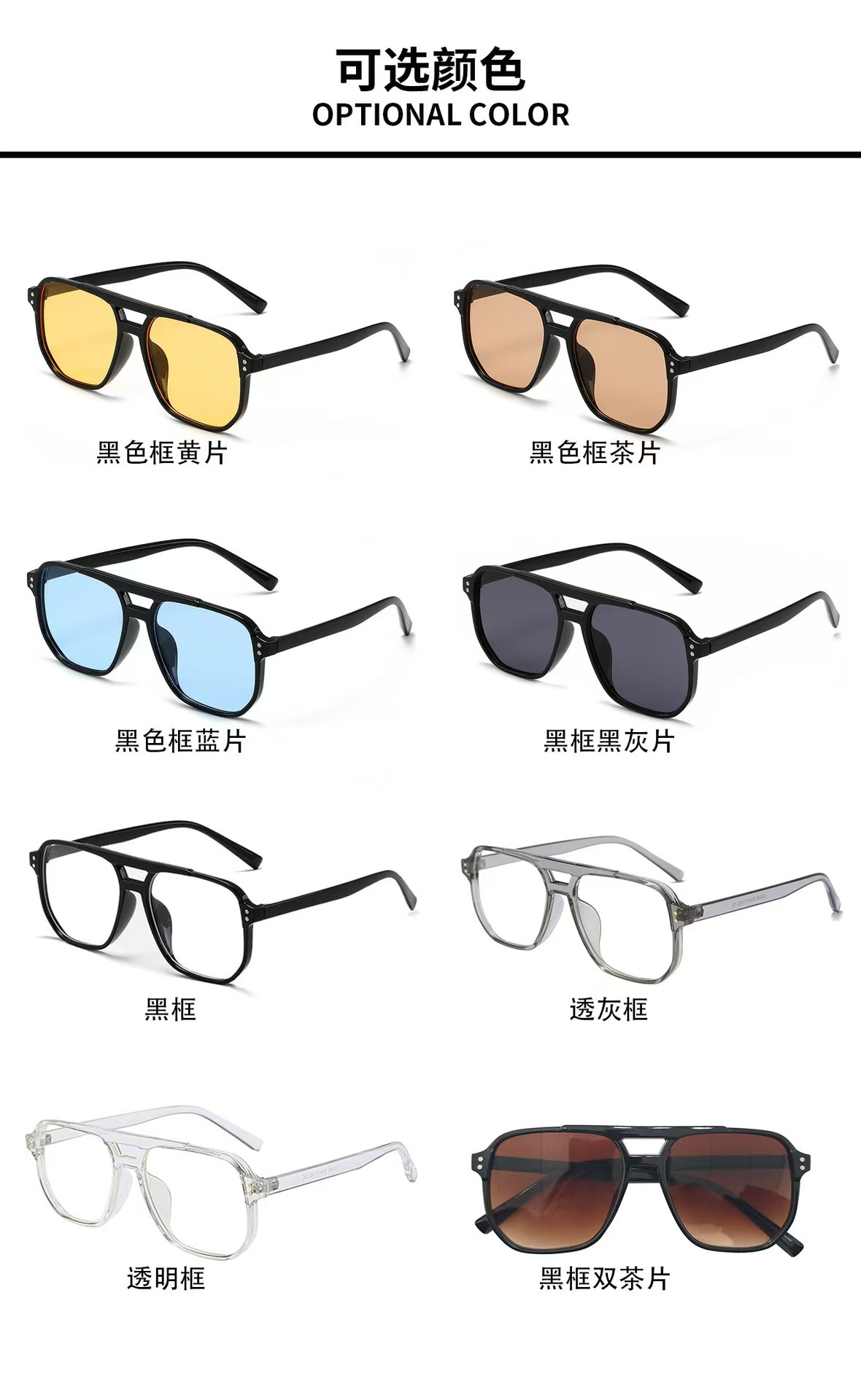 新款方框太阳镜防紫外线网红复古果冻色海洋片双梁米钉飞行员墨镜