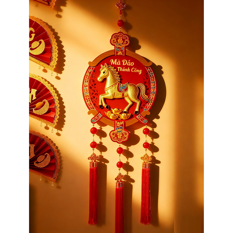 ベトナム文馬年新作「福」字吊り下げ飾り2026年新春春節飾り新年玄関飾り