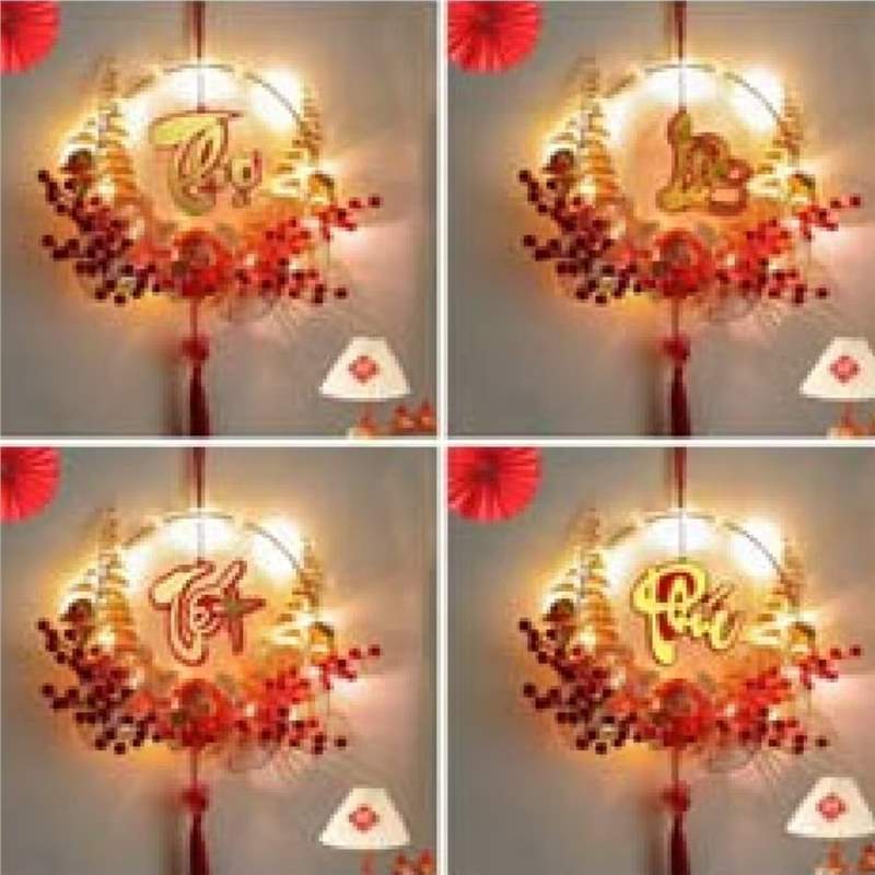 越南文外贸专供发光铁艺新年福字门挂挂件门口春节装饰入宅布置品