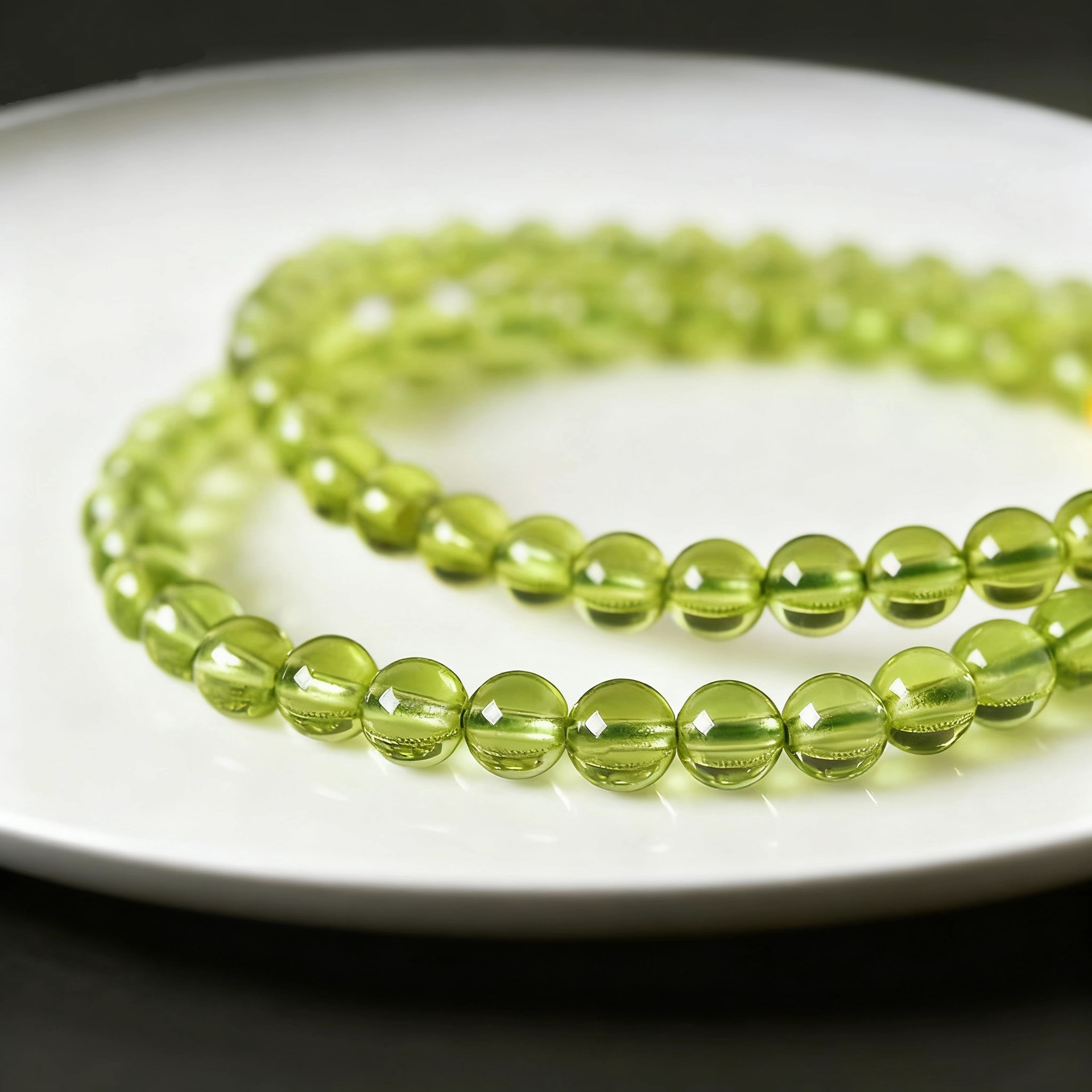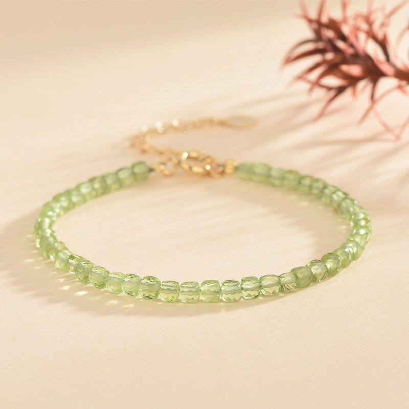 極細3mm天然オリーブ石角型切りブレスレットins小衆軽豪華水晶手串オリーブ石ブレスレット