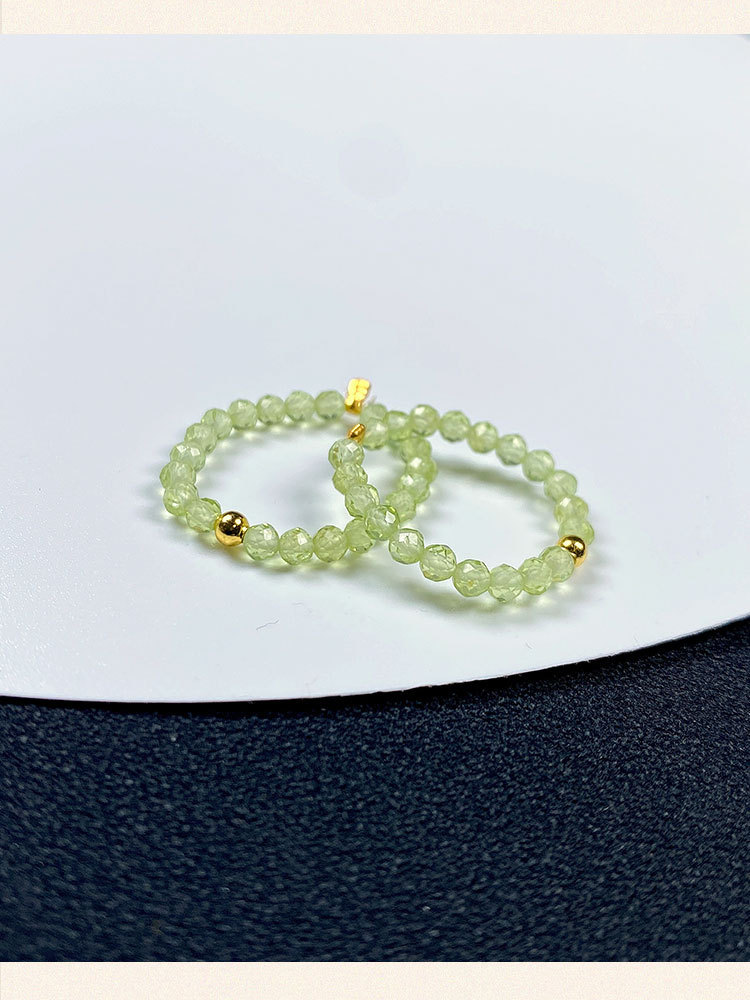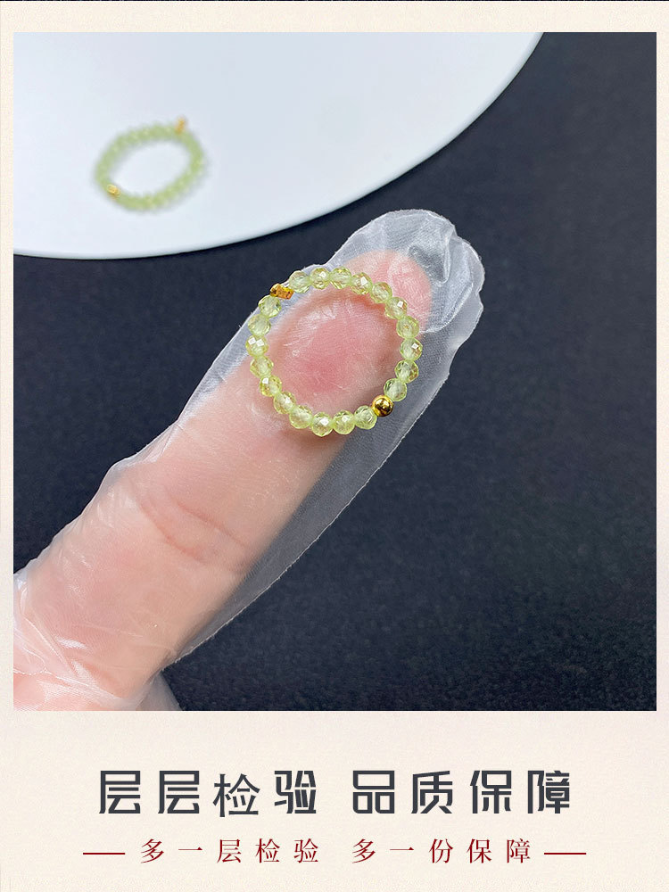 天然緑のオリビンのブレスレットの細い金は緑色の水晶の3つのリングの手の串の裸の原石の指輪の卸売りを掛けます。