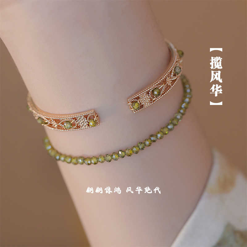 Lanfenghua 天然ペリドットクリスタルブレスレット女性のための新しい中国風中国学スタッキングブレスレット国民トレンドライト高級ホットギフト