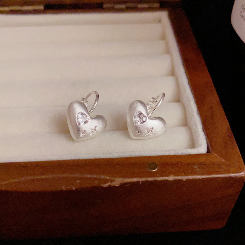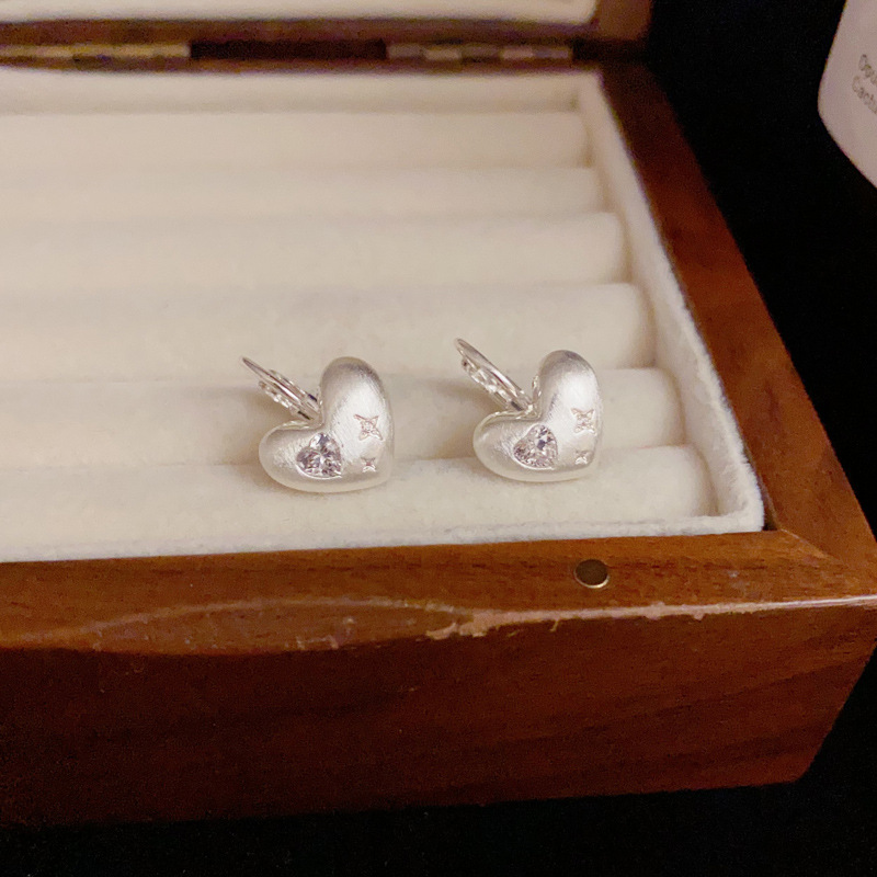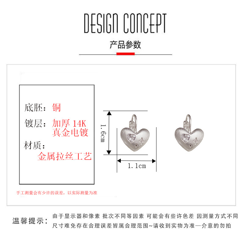 韓国式ファッションシンプルな銀色の金属の糸を引く愛の耳のボタンの小さい大衆のデザイン感の甘いクールなイヤリングの卸売り