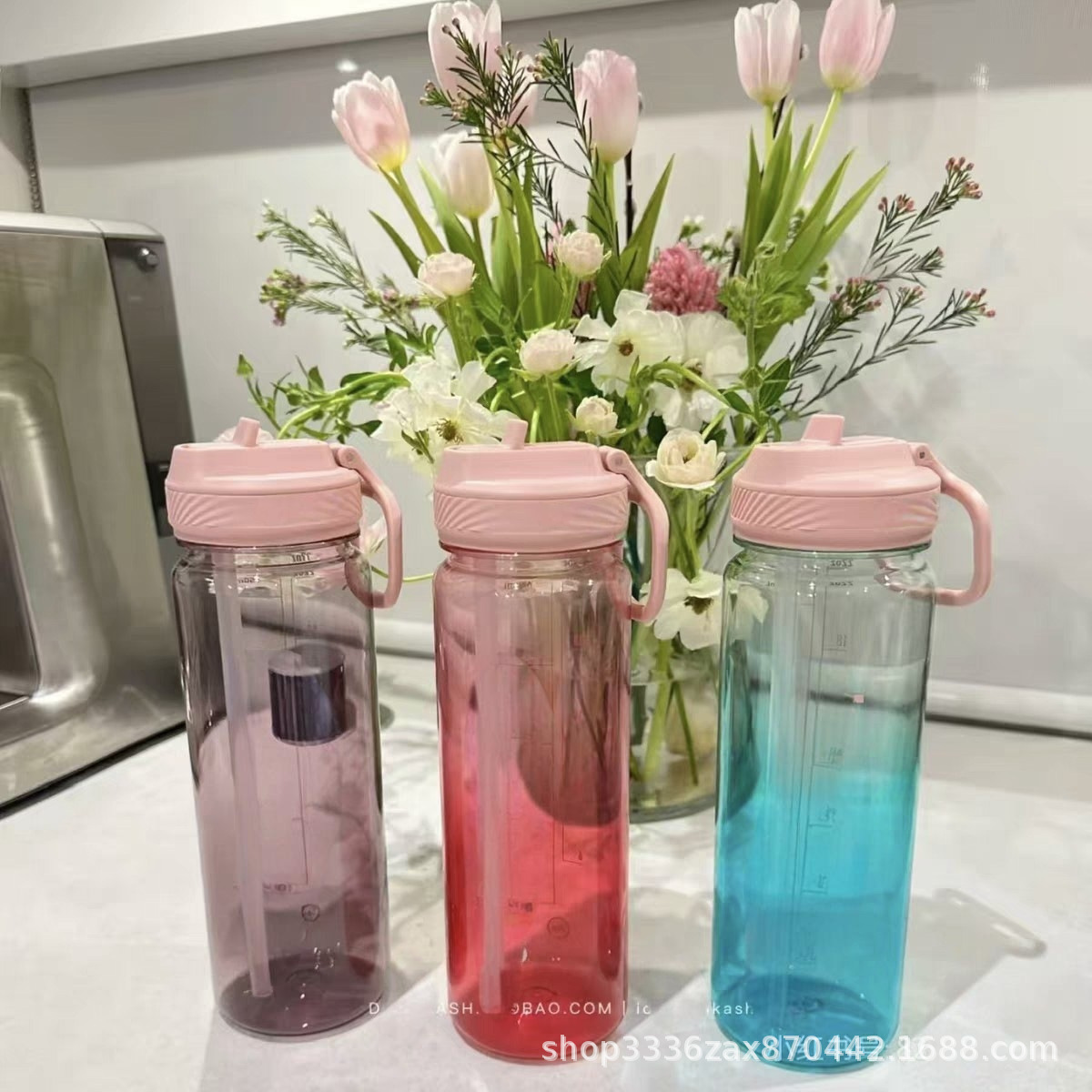 国境を越えたプラスチック製のウォーターカップ、フラワーティーカップ、シンプルな落下防止密封水筒、ポータブル広告カップロゴ