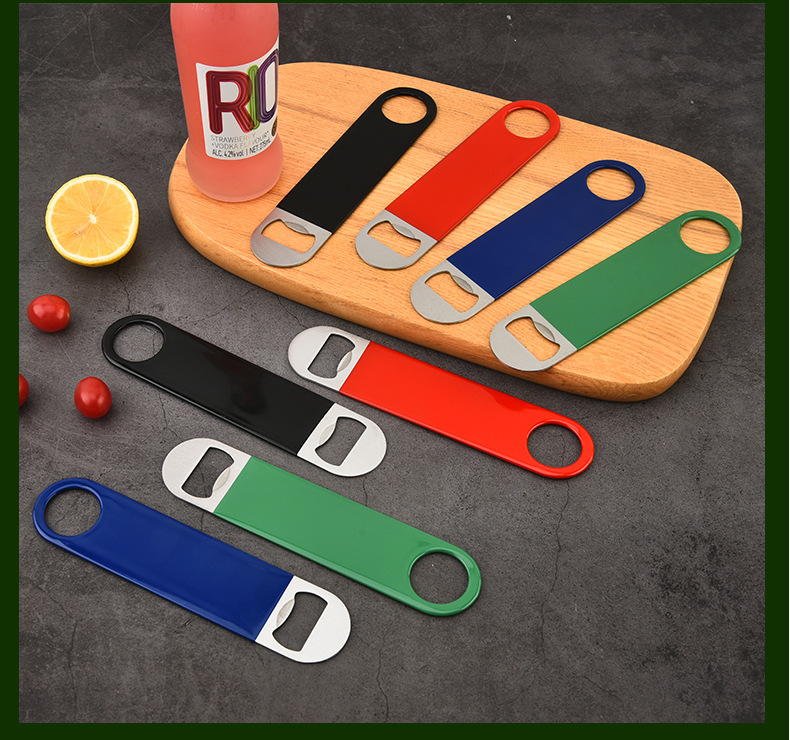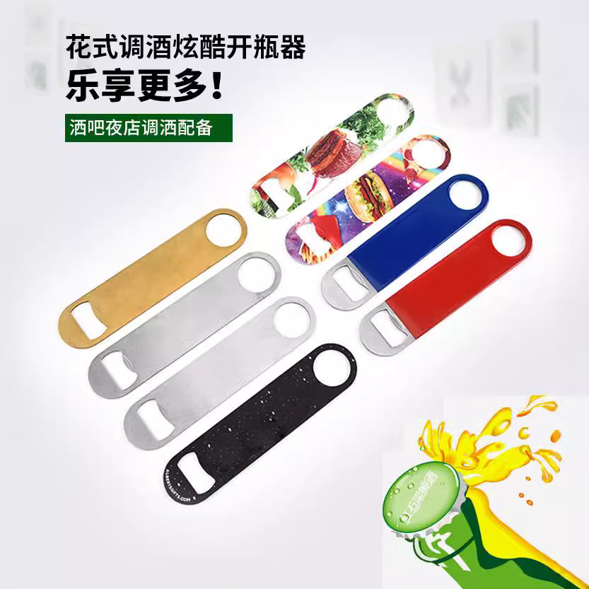 现货批发金属啤酒起子浸胶包胶广告瓶起子不锈钢直板啤酒开瓶器