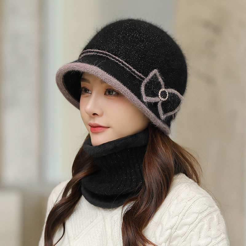 秋冬の女性用スカーフツーピース帽子セット、多用途でファッショナブルなベルベットの暖かいひさし付きキャップ、冬のサイクリング防寒ウール帽子
