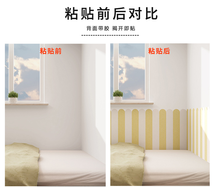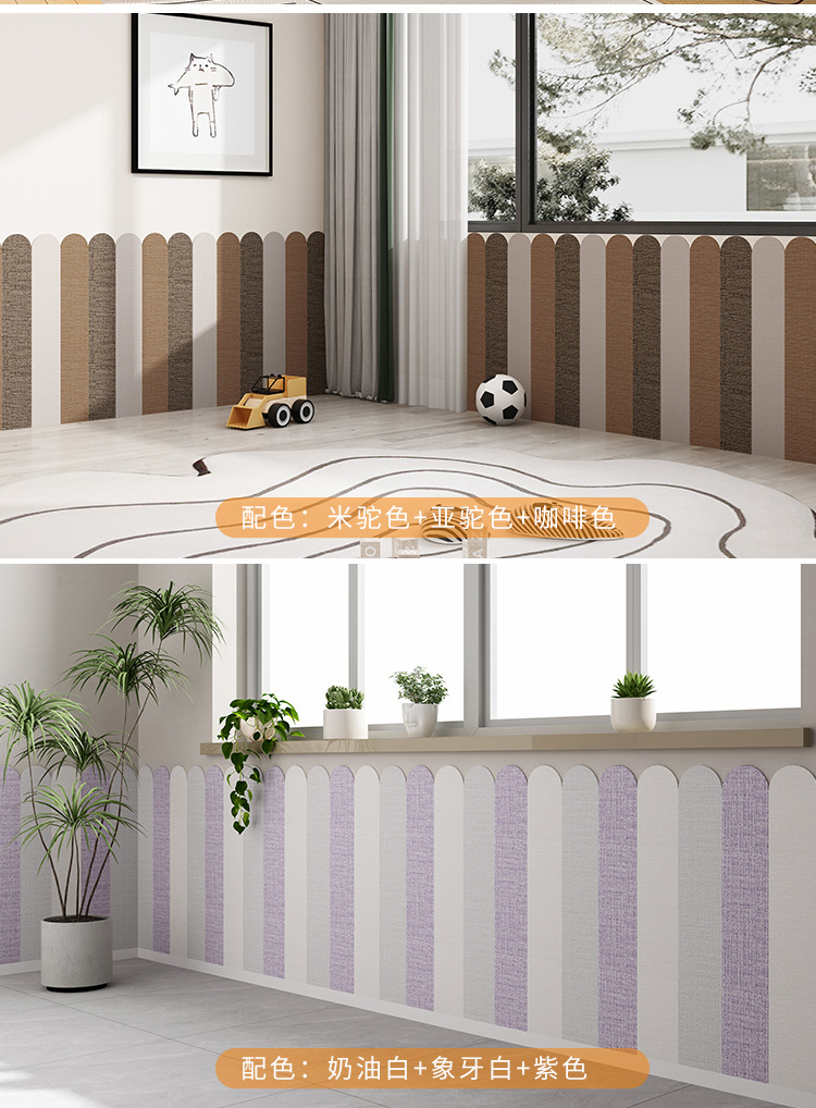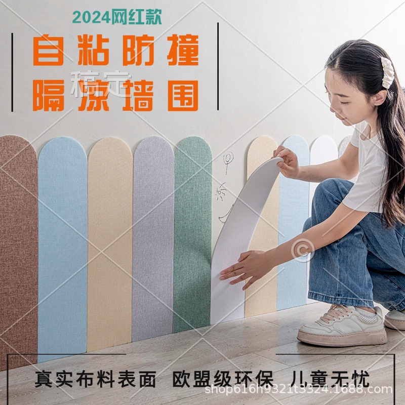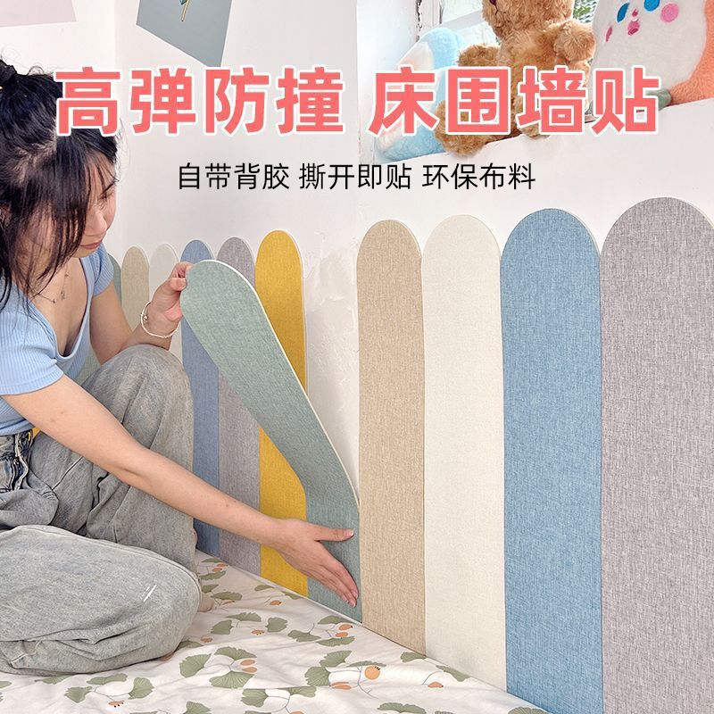亚麻布料墙围自粘墙贴儿童房床围防撞软包幼儿园墙面翻新墙裙批发