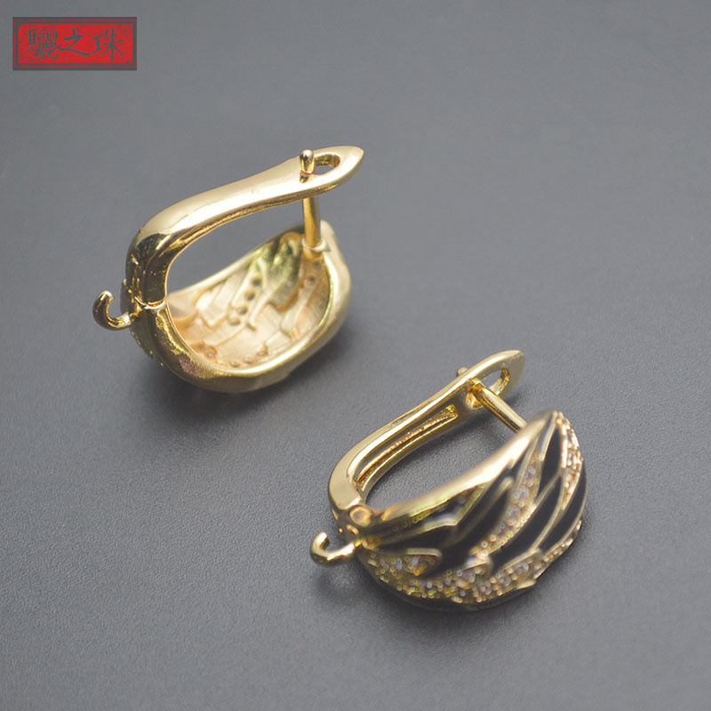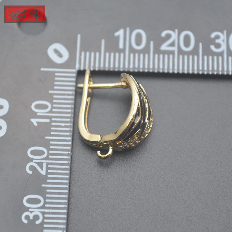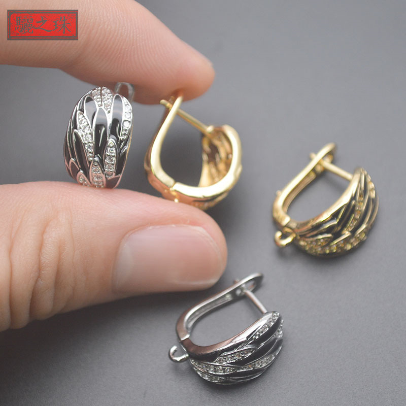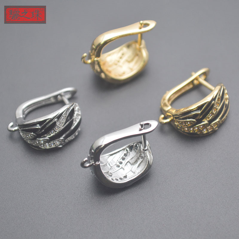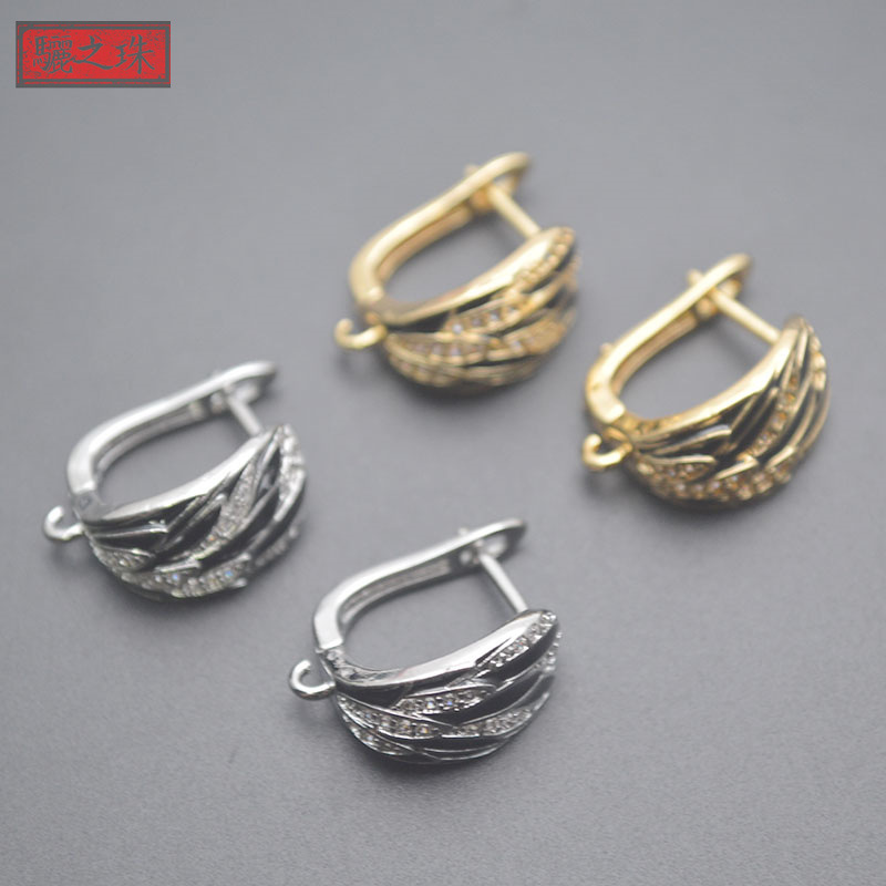 真金电镀微镶锆石U形羽毛翅膀DIY耳环配件