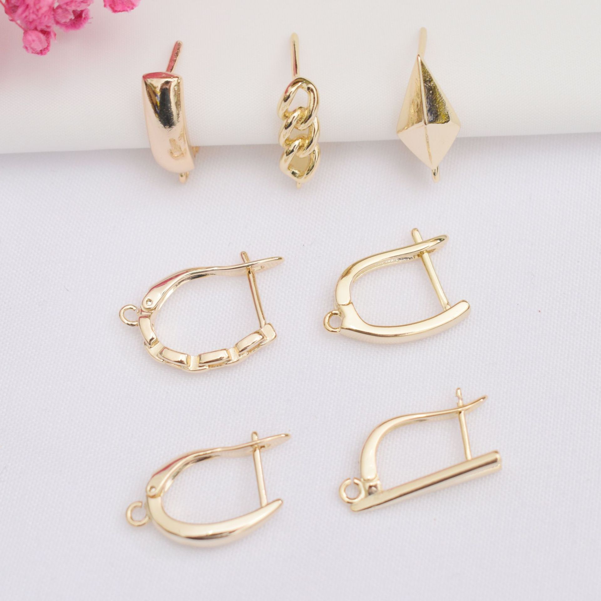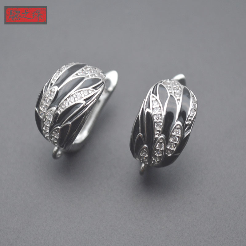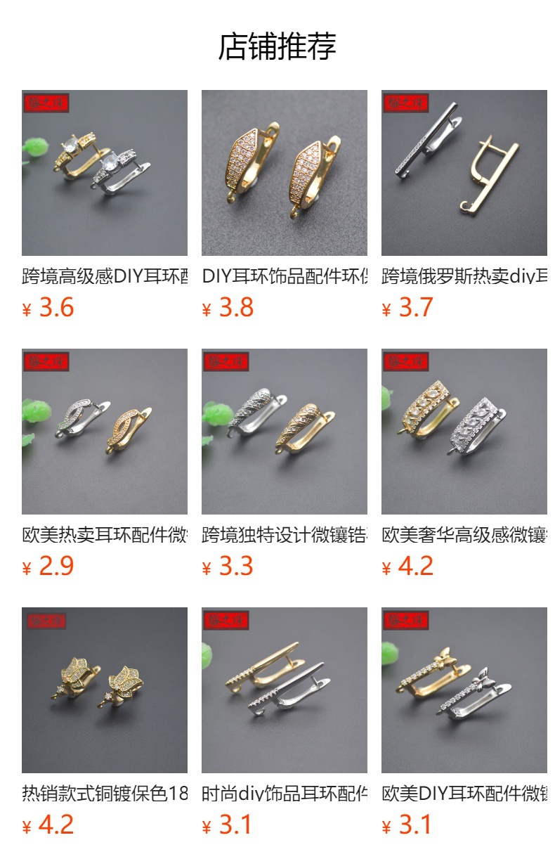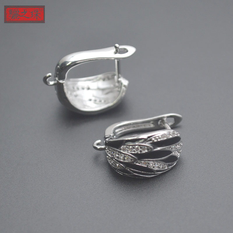 真金电镀微镶锆石U形羽毛翅膀DIY耳环配件