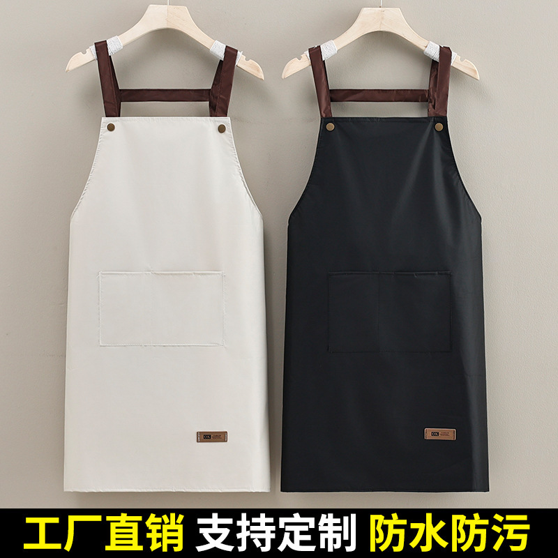 新款交叉背带围裙防泼水围腰家用炒菜做饭家务厨房防油污工作餐饮