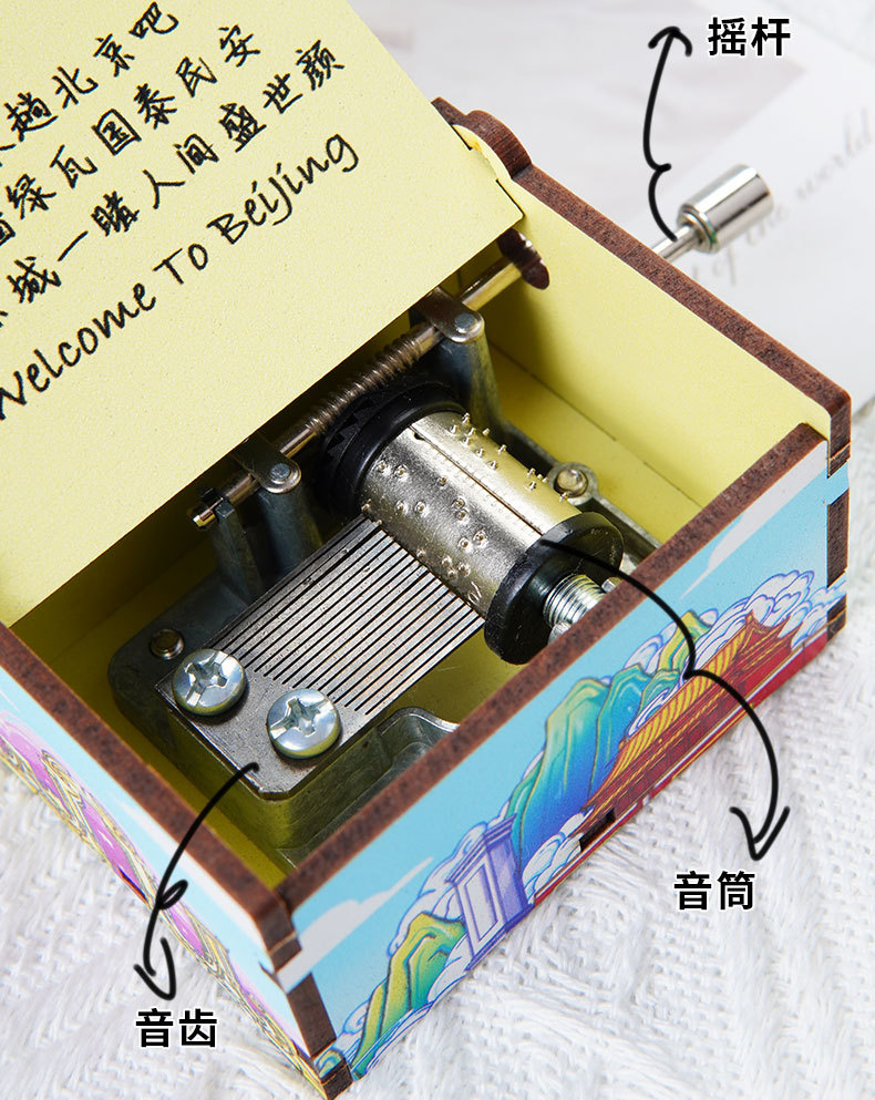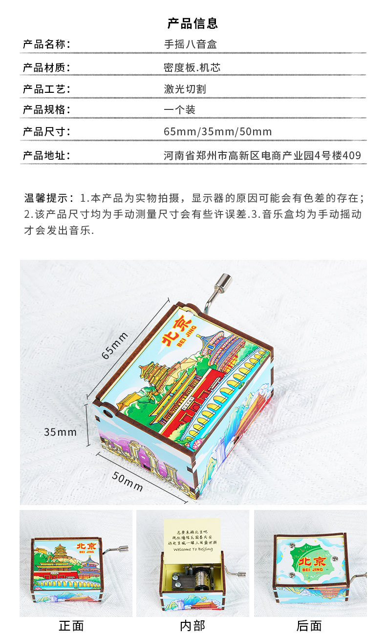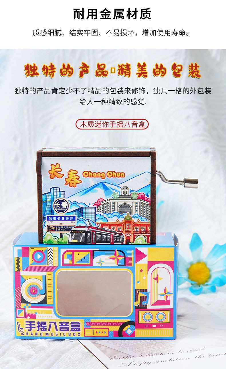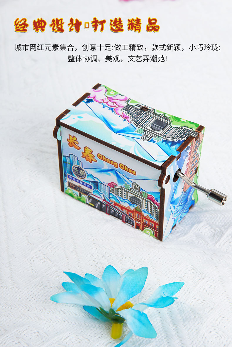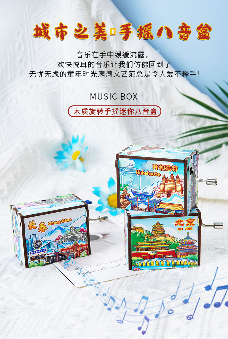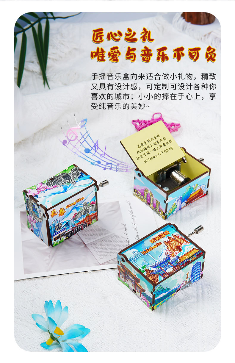 原创木质全国地标景点音乐盒手摇八音盒音乐铃旅游纪念品城市文创